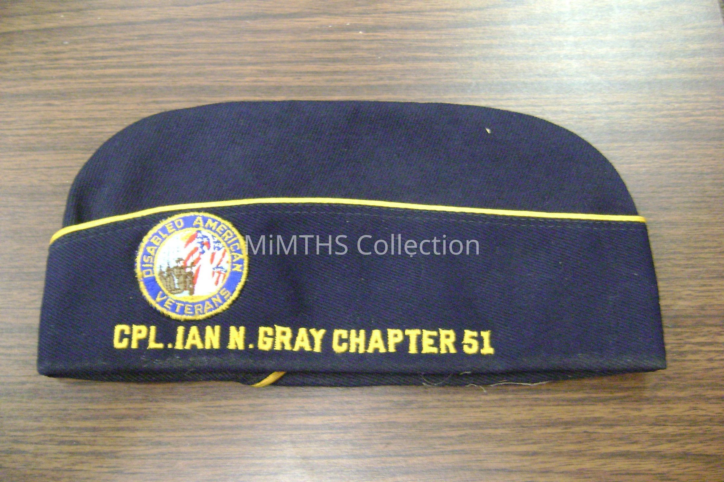 CPL. Ian N. Gray Chapter 51 Hat, Disabled American Veterans seal, Dearborn, Mich., in box with Peter Lazar's stuff, size 7 and 1/4Cataloged By