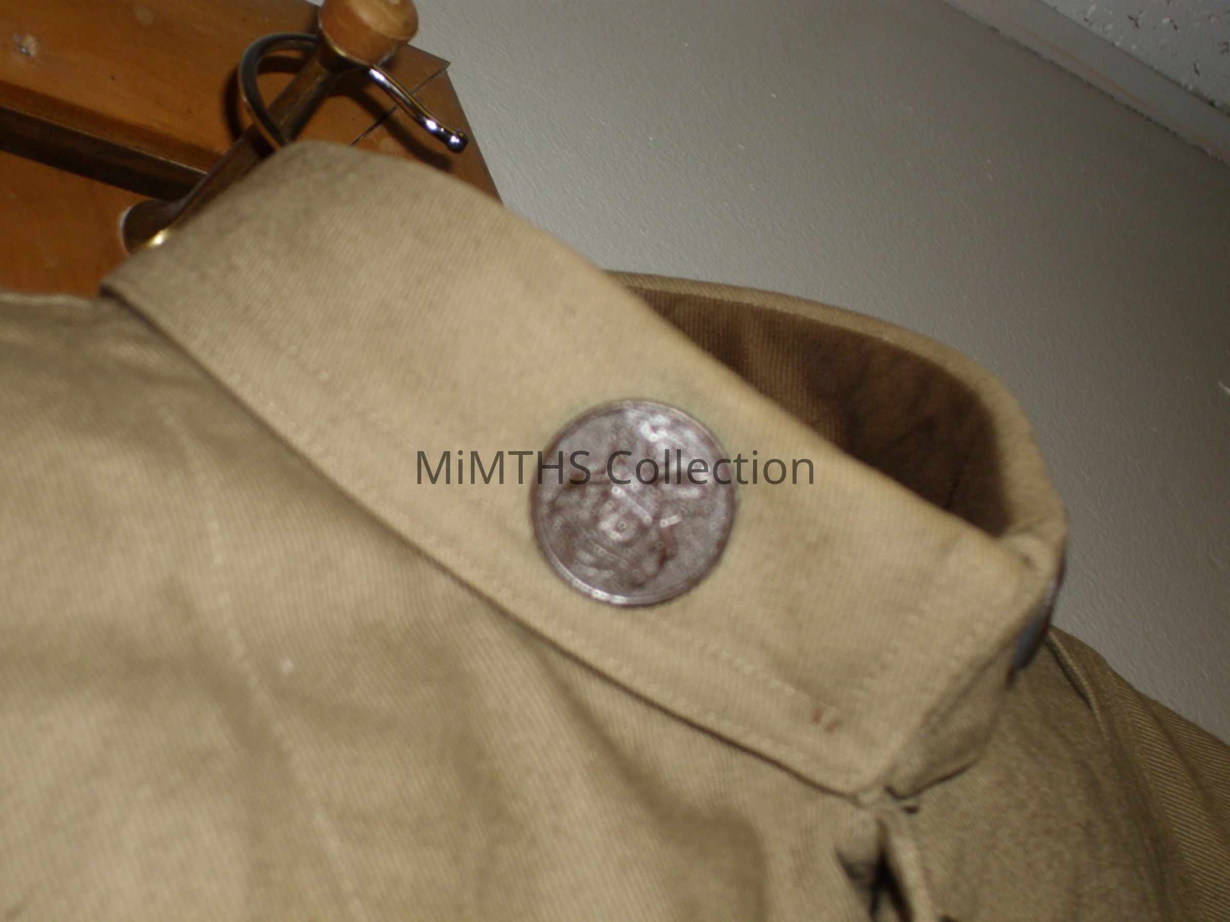 Khaki cotton tunic, with Michigan State seal buttons as well as State seal and 29th Company collar insignia. Made by Henderson Ames Co. of Kalamazoo, Mich.Acquisition
