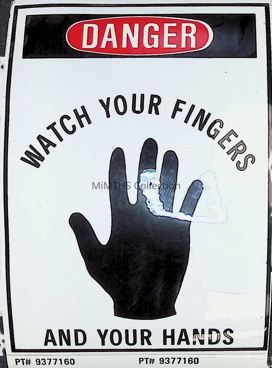 DANGER, Watch Your Fingers and Your Hands; sticker