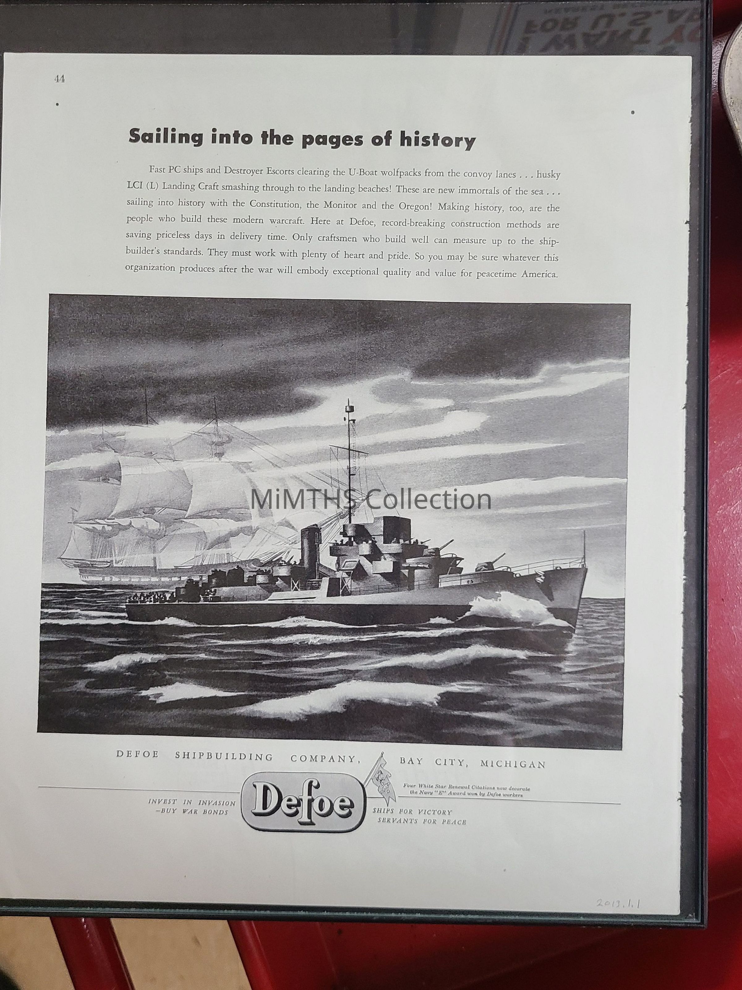 11x14 ad for Defoe shipbuilding with destroyer escort