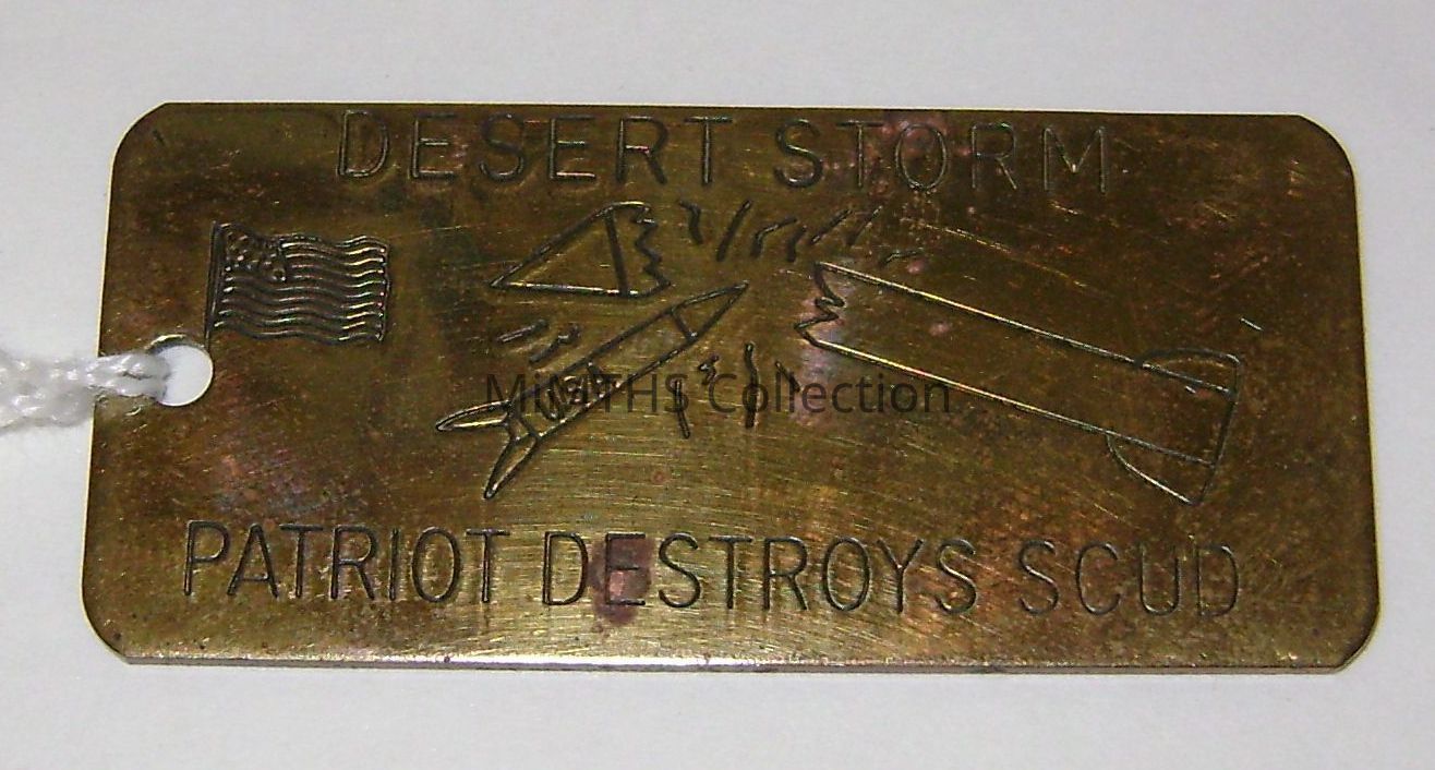 Imprinted with "Desert Storm, Patriot Destroys Scud" and artwork.