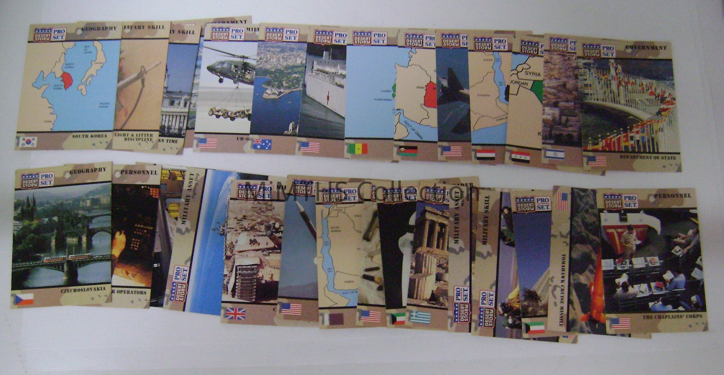 30 Cards from the Desert Storm Pro Series partial assortment of cards within the entire collection. These were educational cards detailing nations, equipment, military tactics, and procedures during the Gulf War.Cataloged By