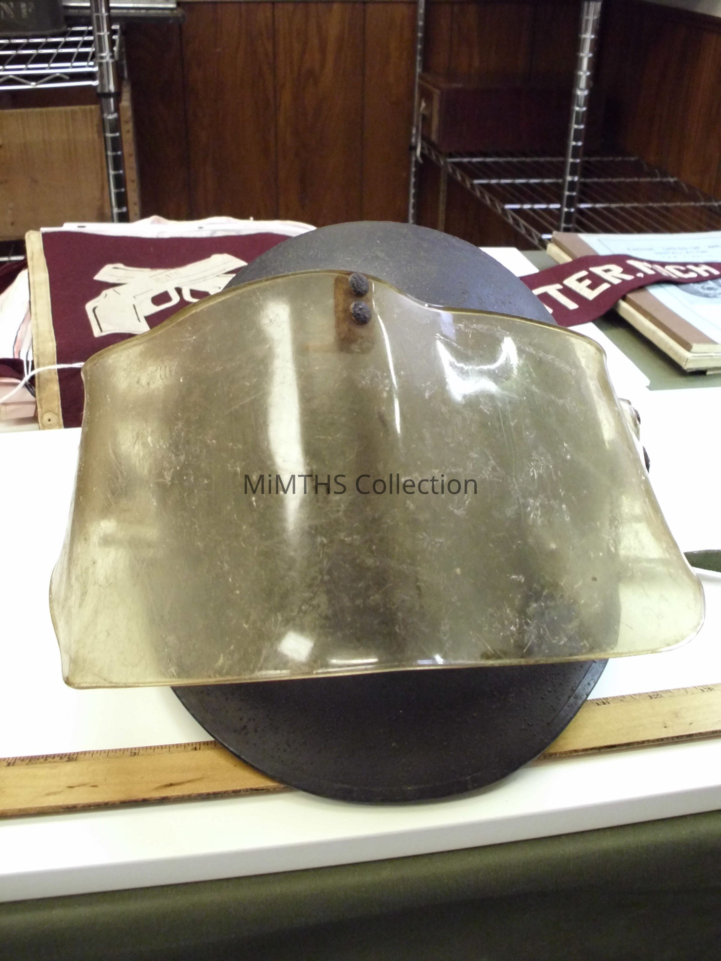These helmets were issued to the DPD in response to the 1967 Riots. It is unlikely that any of theme were actually used at the riots.Cataloged By