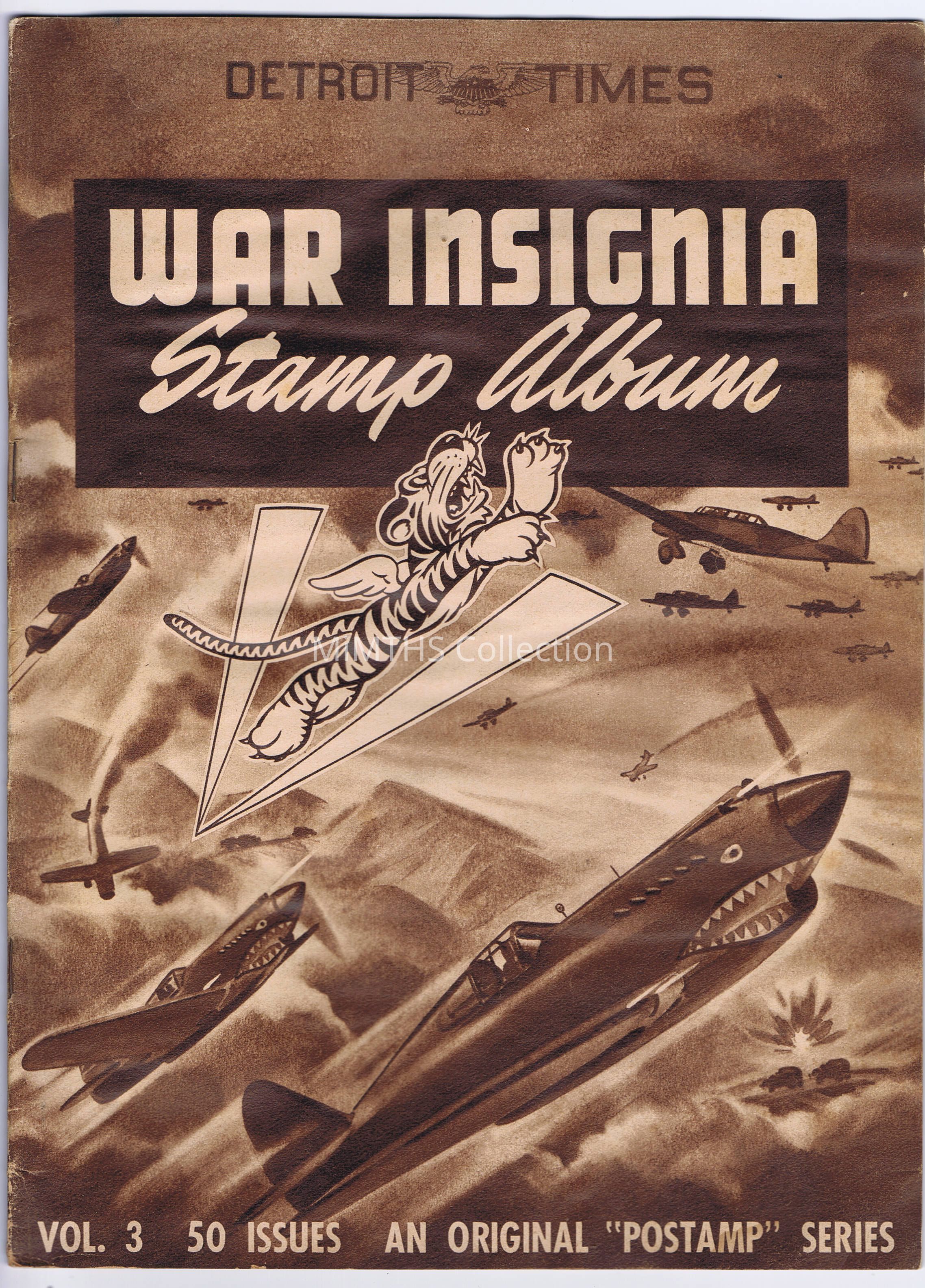 Volume 3 of the Detroit Times War Insignia Stamp Album. 3 albums were produced. Mostly complete, some stamps bave come loose from pages.Cataloged By