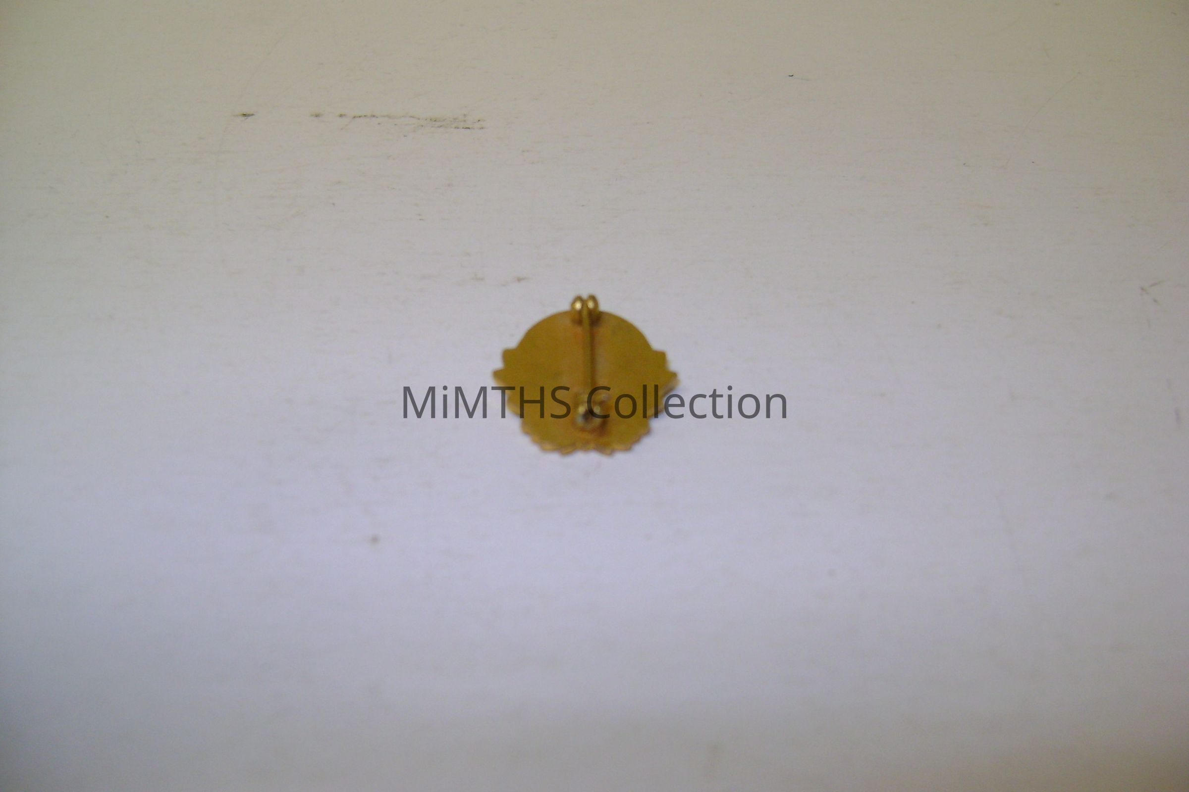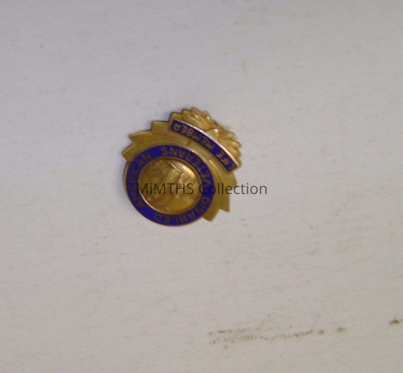 A Disabled American Veterans Pin. On the botton the pin indicates that the owner is a "Life Member". On the back the letters LGB are etched above a X.Cataloged By