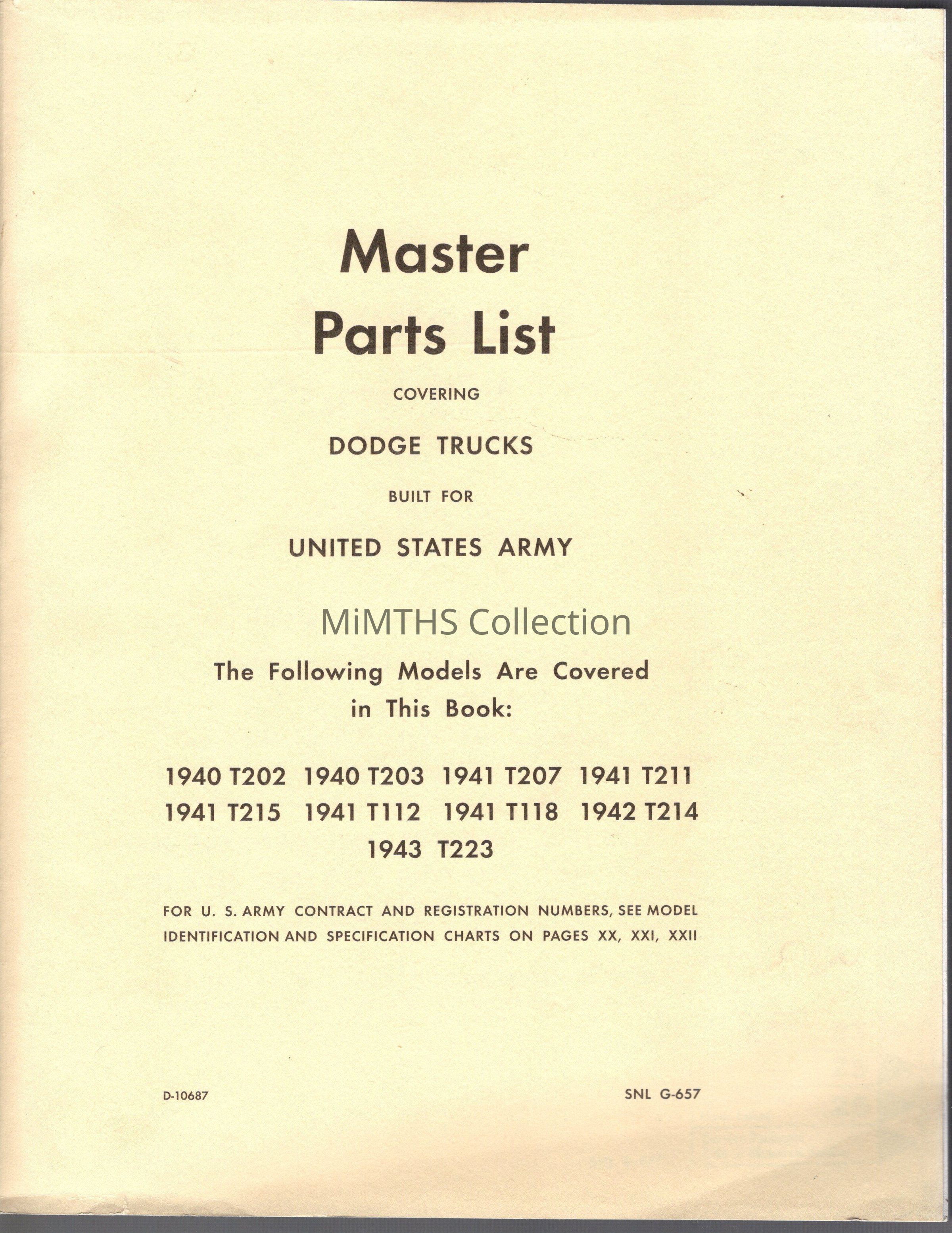 MASTER PARTS LIST COVERING DODGE TRUCKS BUILT FOR UNITED STATES ARMY