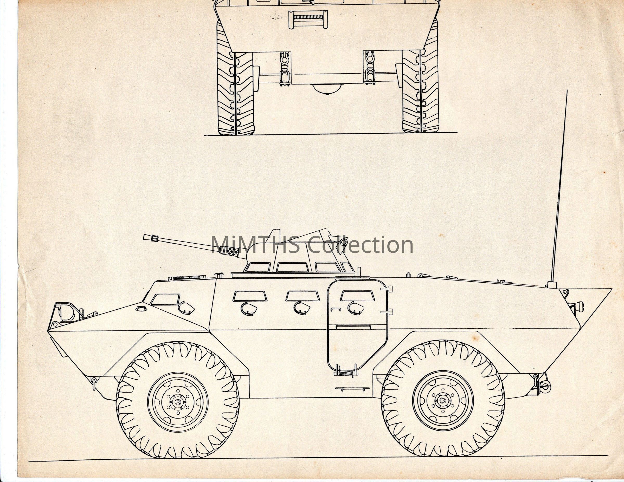 side view line drawing of Cadillac Gage V100.Cataloged By