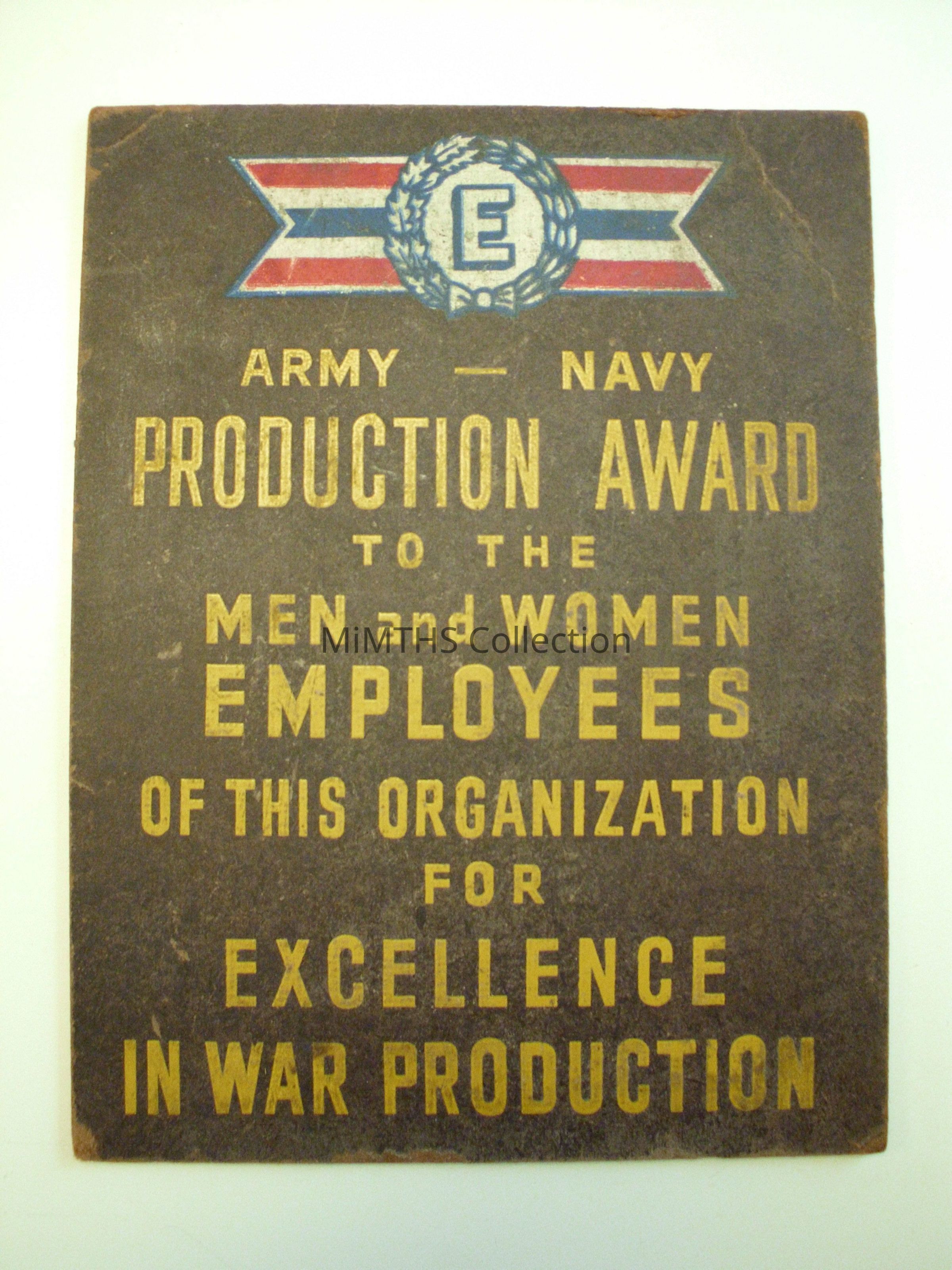 10x7.5 inch presswood board announcing the e-award for an un-named companyCataloged By