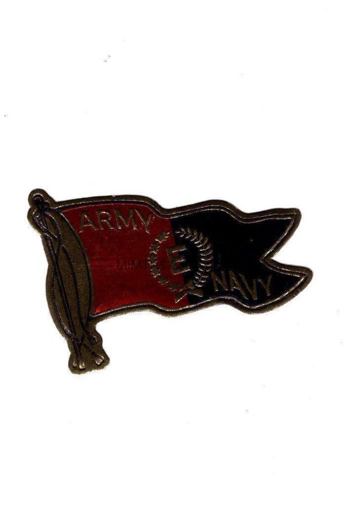2" mettallic gum-back sticker in the shape of the Army-Navy E Award flag.Cataloged By