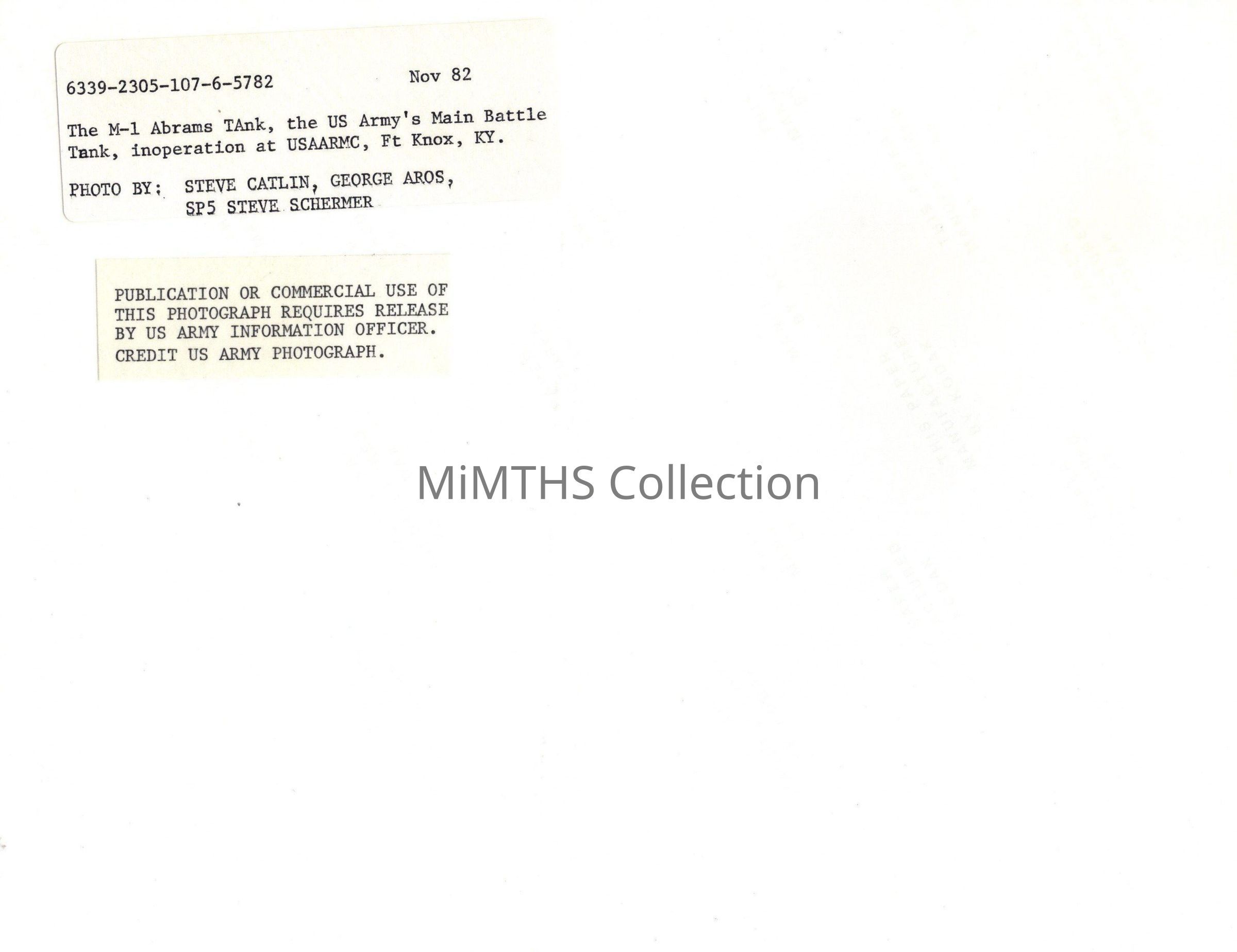 Original photo of an Early M1 Abrams at Ft. Knox. Captioned on back.Photograph Details
