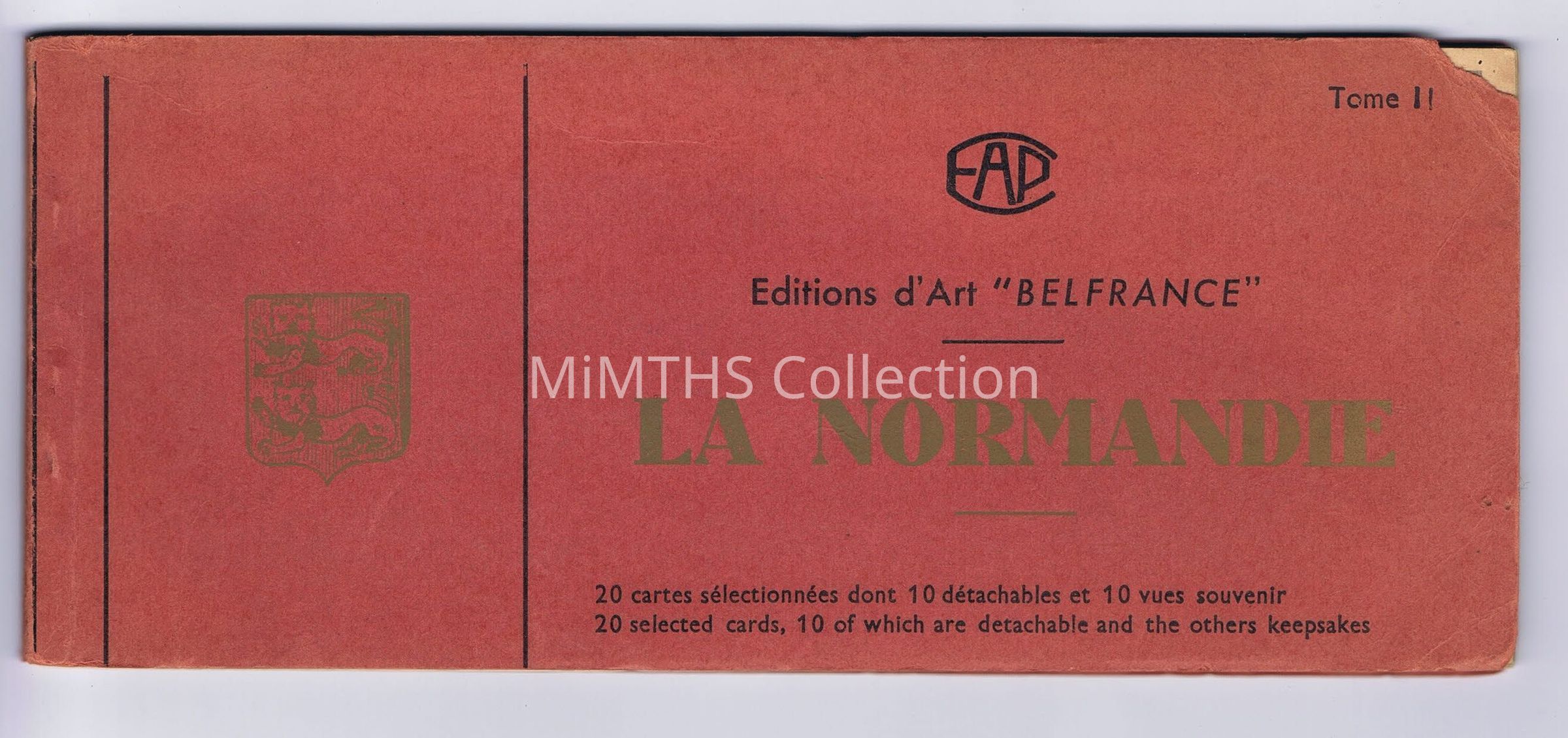 Book of French postcards and photos, Tome II, "Editions d'Art 'BelFrance' La Normandie", FAD, from Valognes, France, August 1945. 3.5in by 8.25inCataloged By