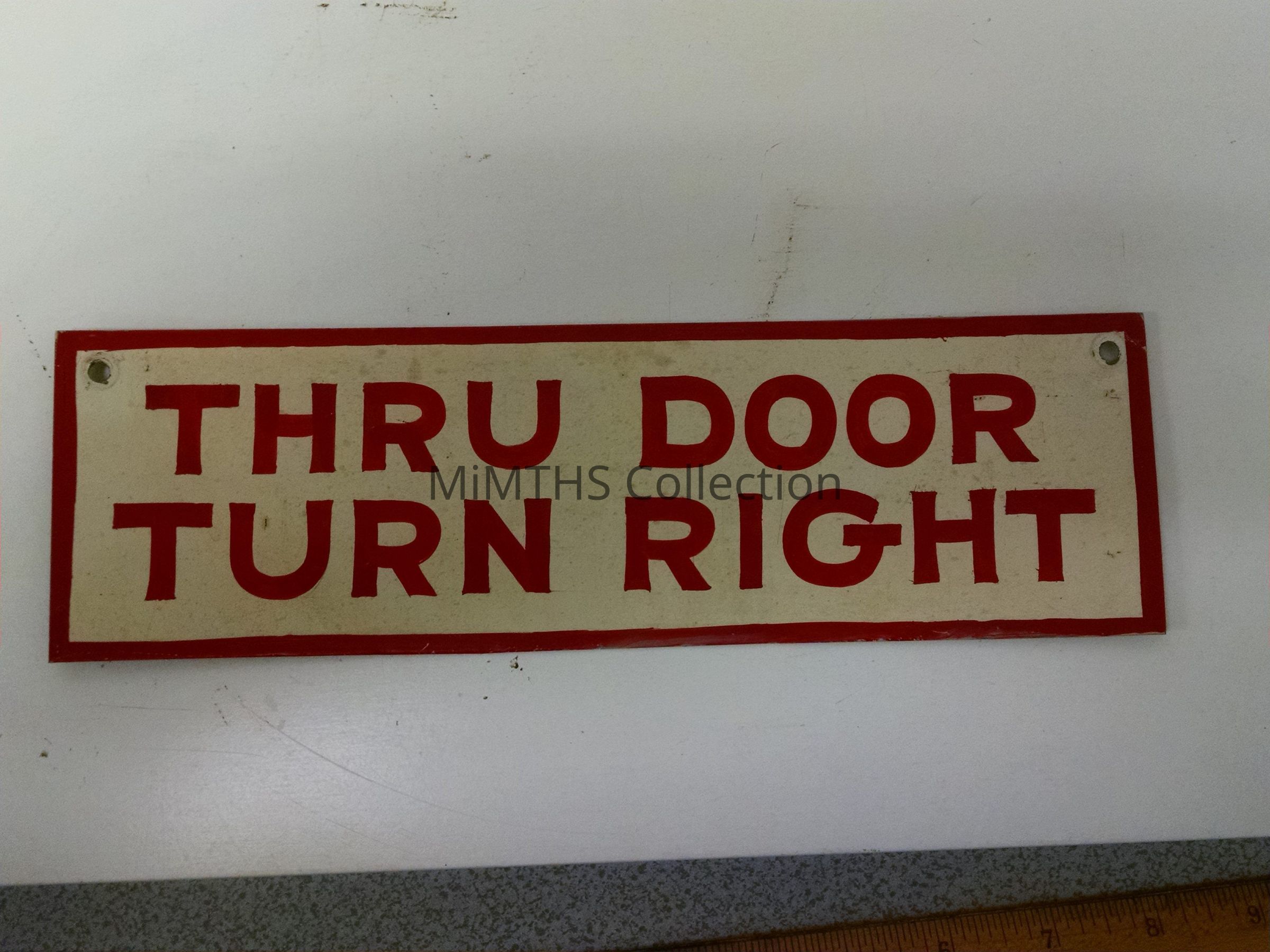 10x3" hand painted "Thru Door, Turn Right" sign removed from the 4th floor executive offices at the Packard Aviation Engine plant.