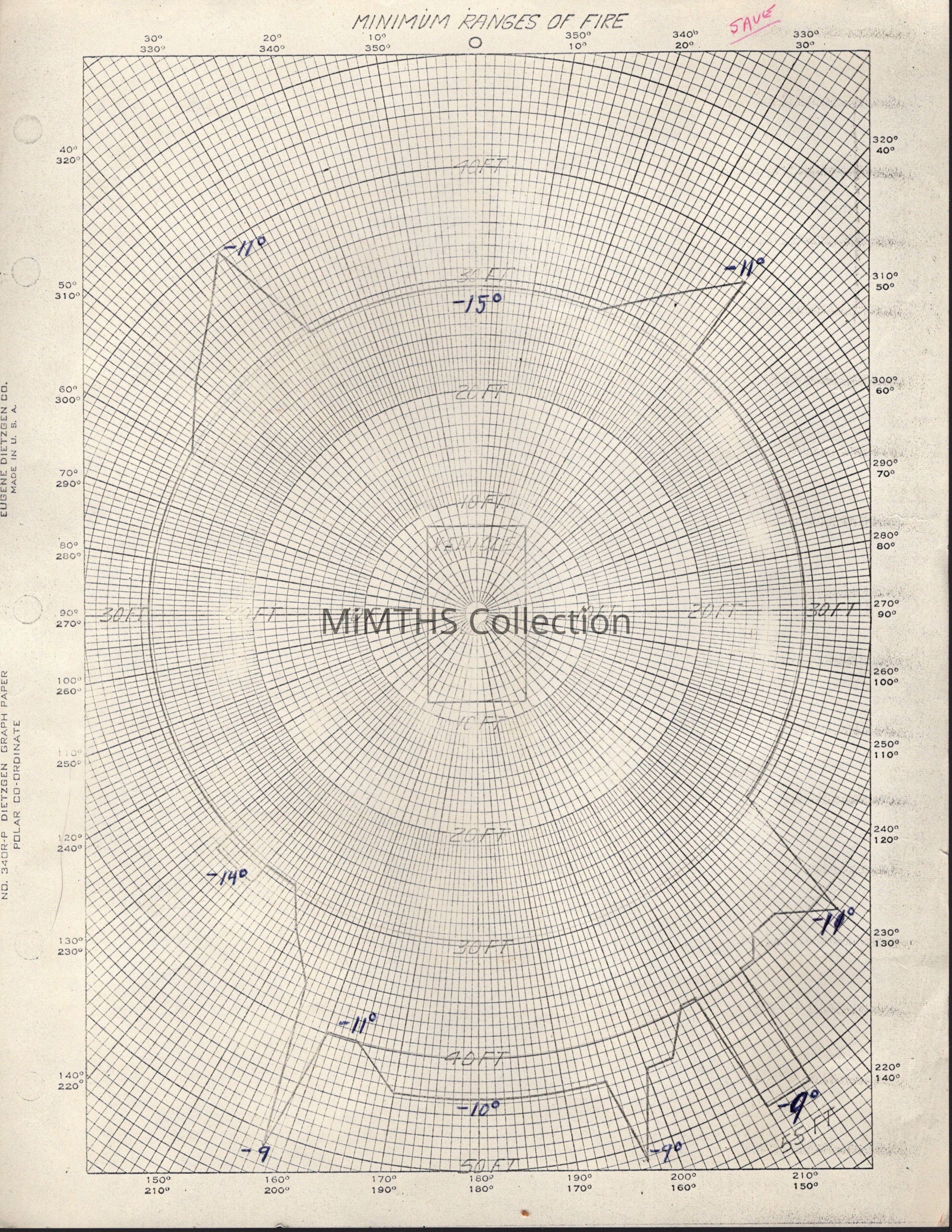 Engineering Drawing, Cadillac Gage, Minimum Ranges of Fire, black-on-white copyCataloged By