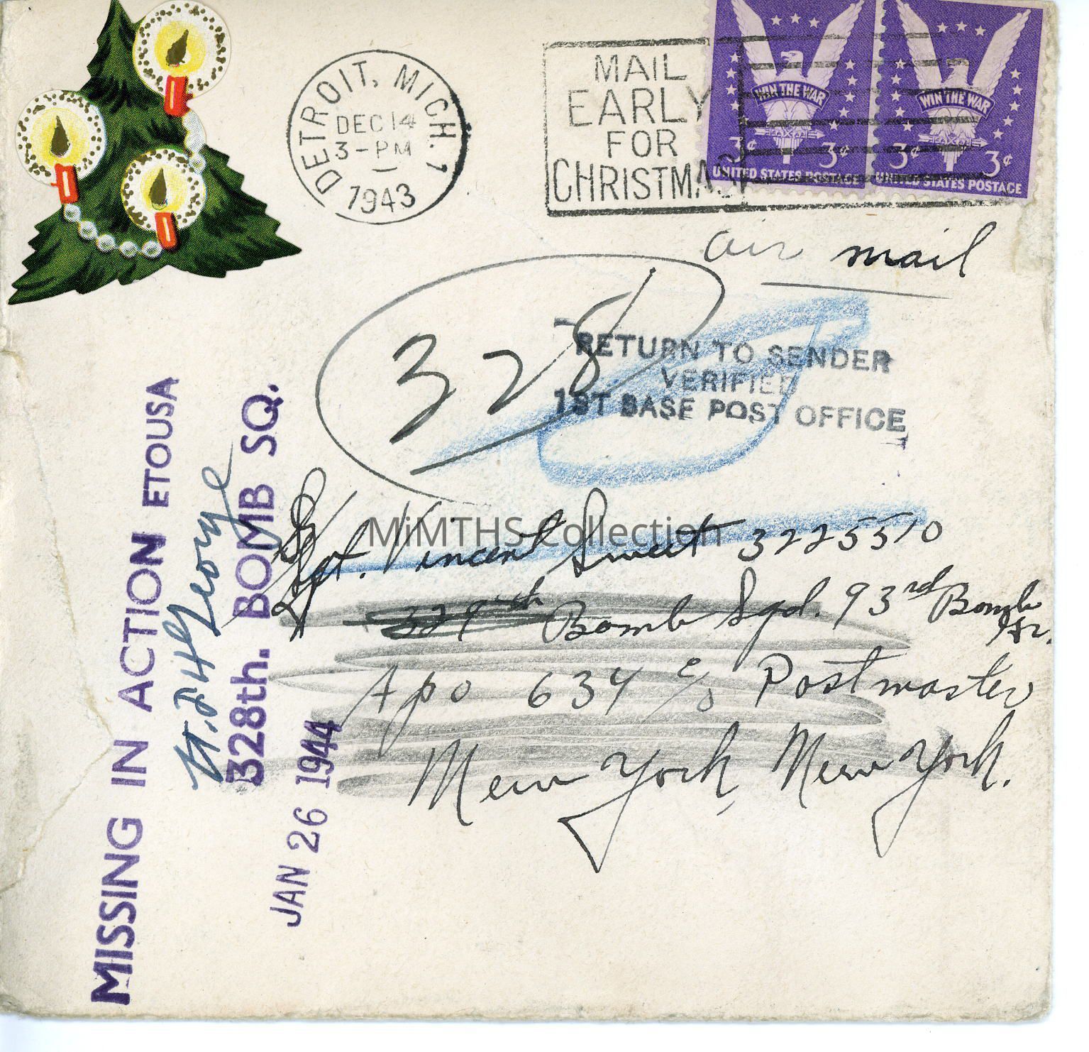 After entering the service in March 1942, he was stationed at training bases in Mississippi and Florida, and immediately before going overseas, was based at Salinas, Cal.
