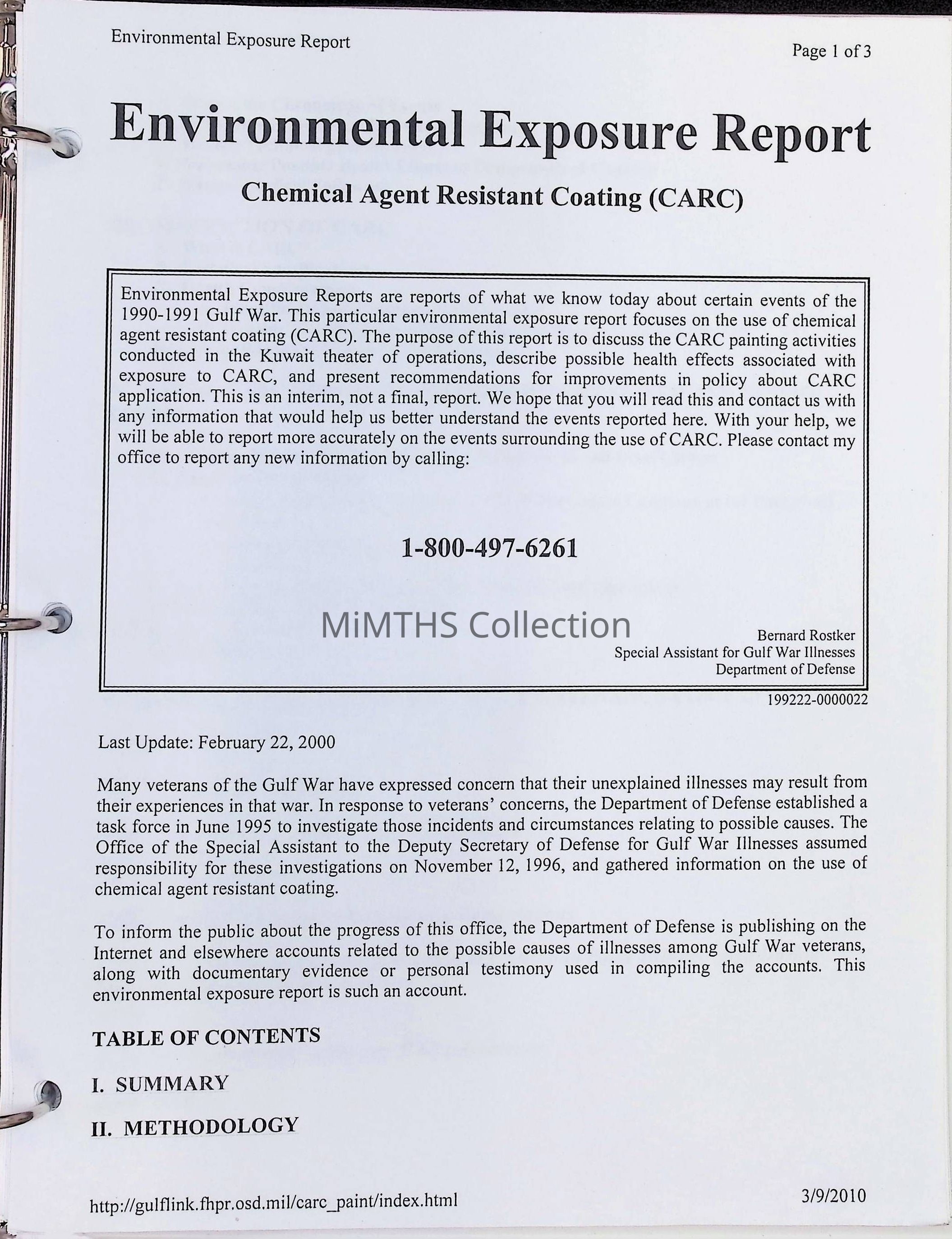 Environmental Exposure Report, Chemical Agent Resistant Coating (CARC); Department of DefenseCataloged By