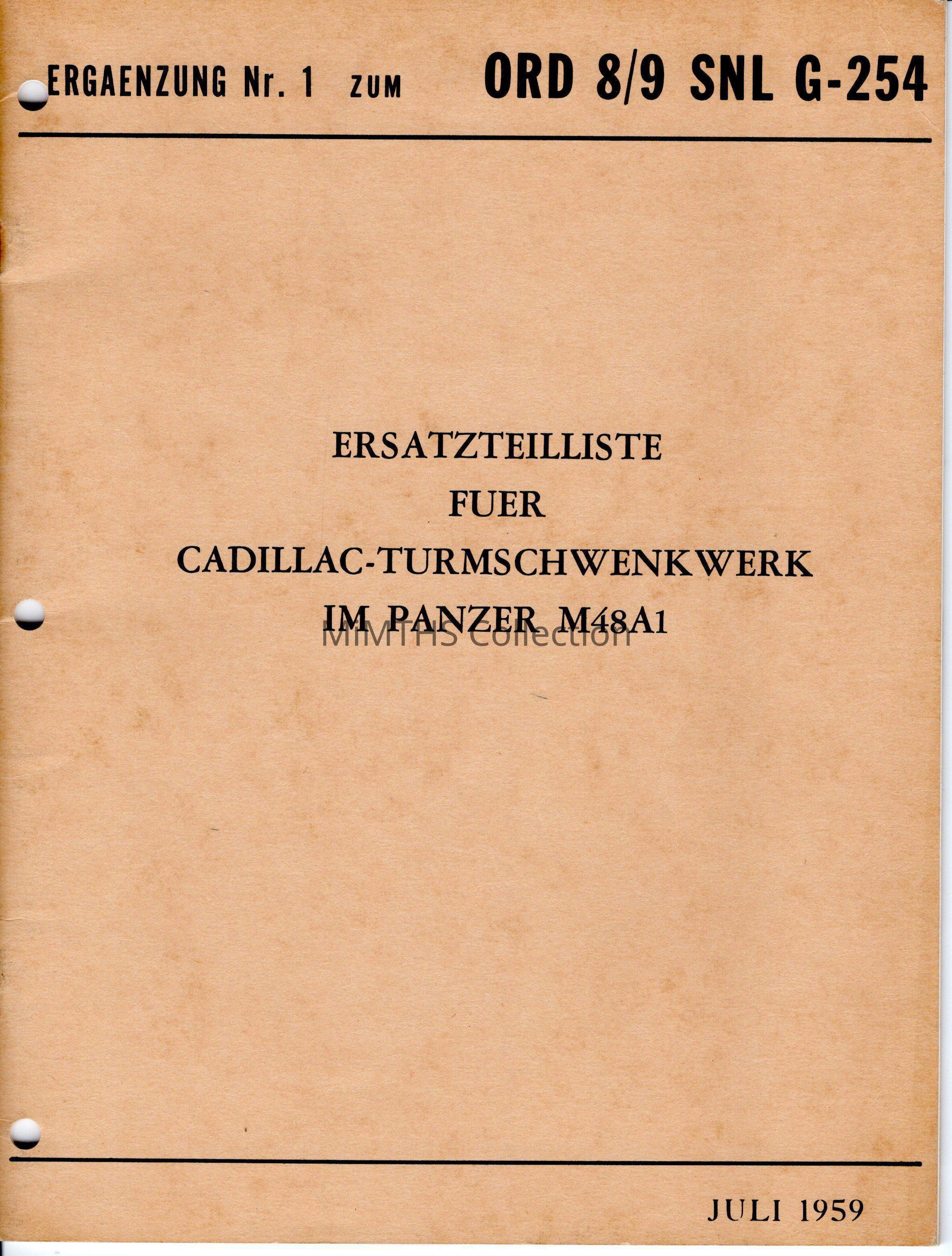 Ersatzteilliste Fuer Cadillac-Turmschwenkwerk Im Panzer M48A1, Ergaenzung Nr. 1, Cadillac Gage parts manual for the fire control system in the M48A1 tanks. In German.