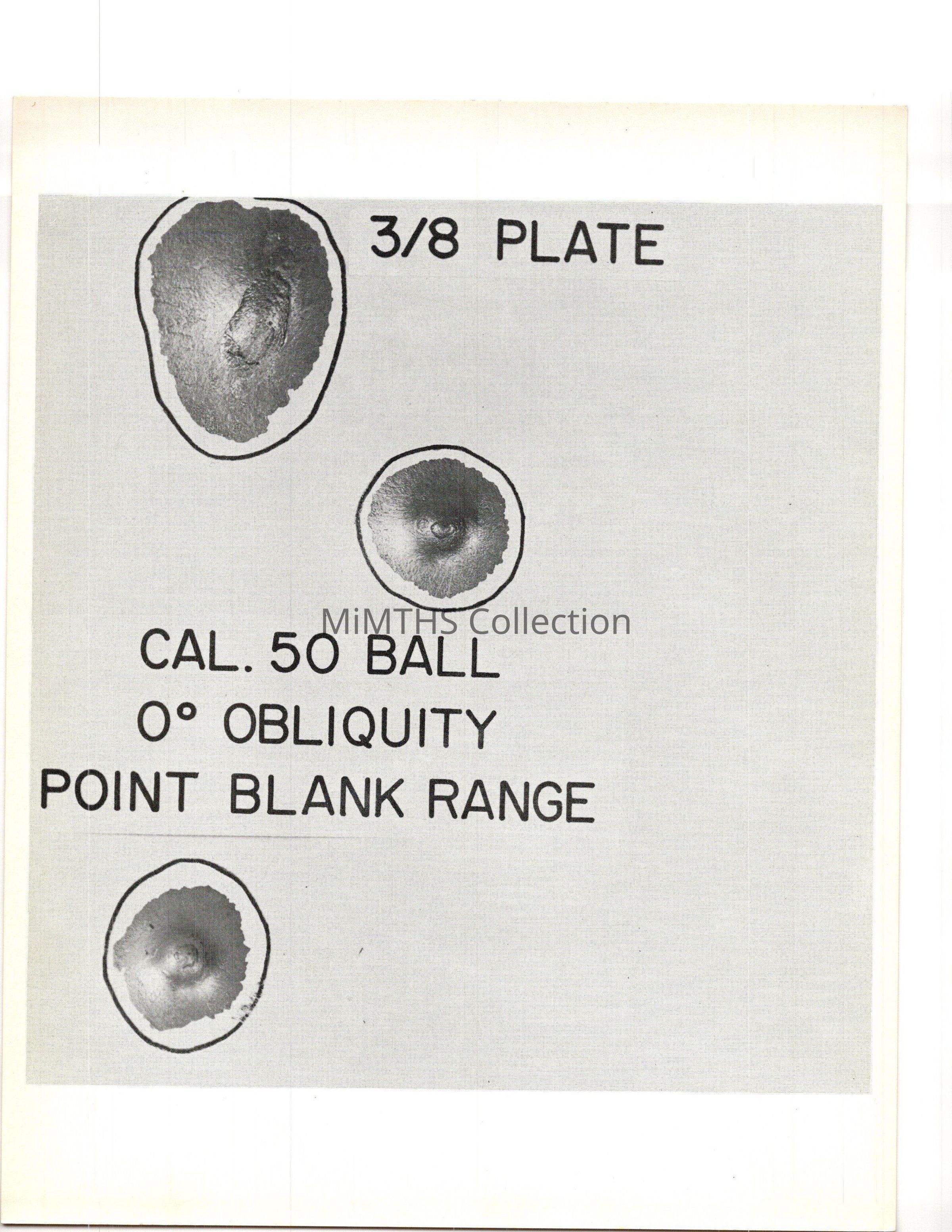3/8 Plate, Cal. 50 Ball, 0 Degrees Obliquity, Point Blank Range; Cadillac Gage CompanyPhotograph Details