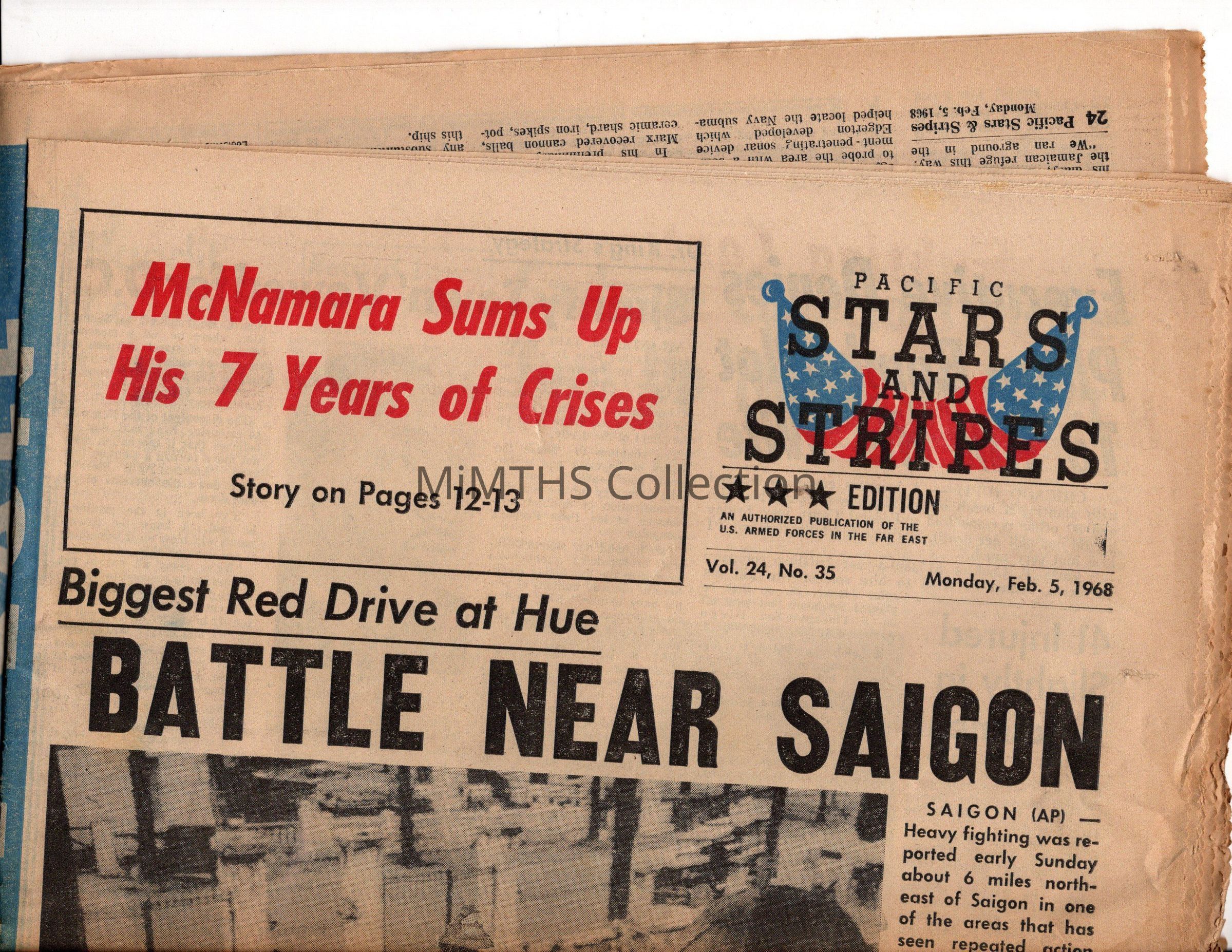 Feb 5, 1968 Stars & Stripes Pacific Edition. Coverage of TET Offensive and battle of Hue.