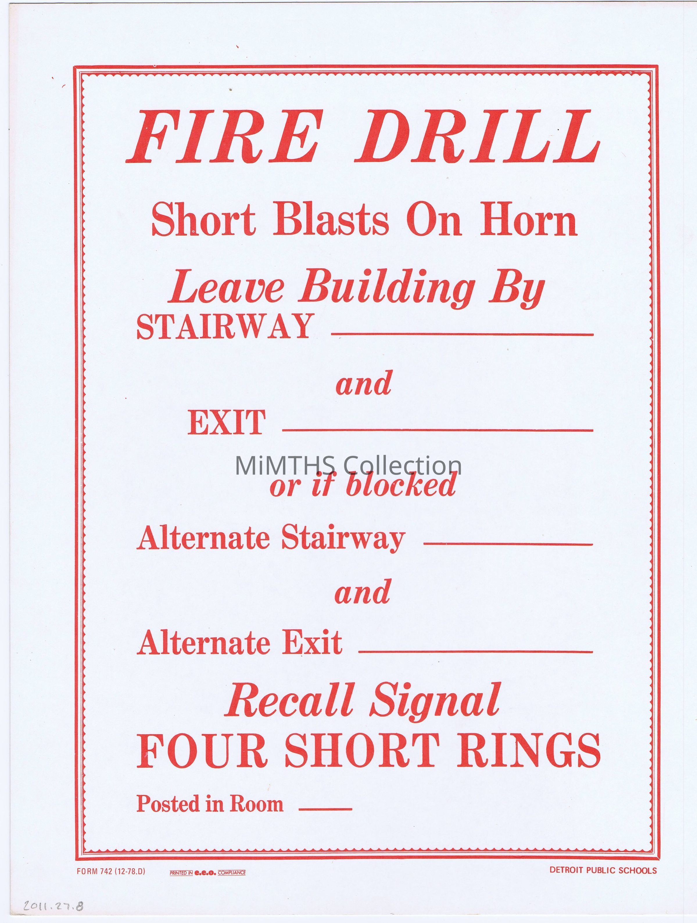 Detroit Public Schools Fire Drill instructions 1978Cataloged By