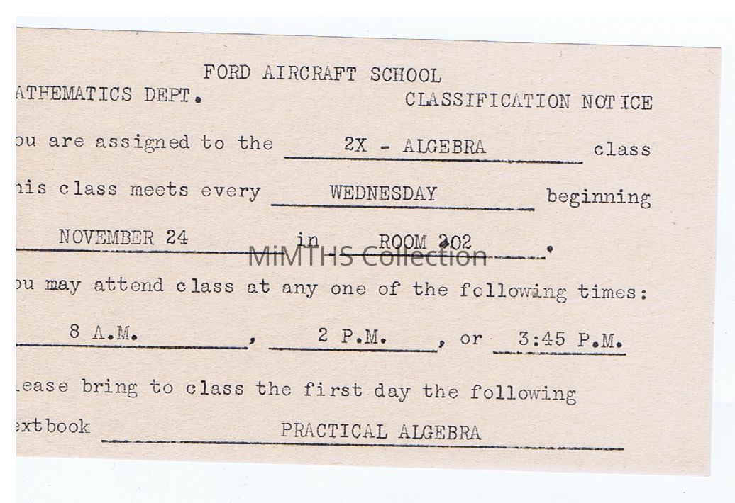 Ford Aircraft School Class NoticeEntry/Object ID