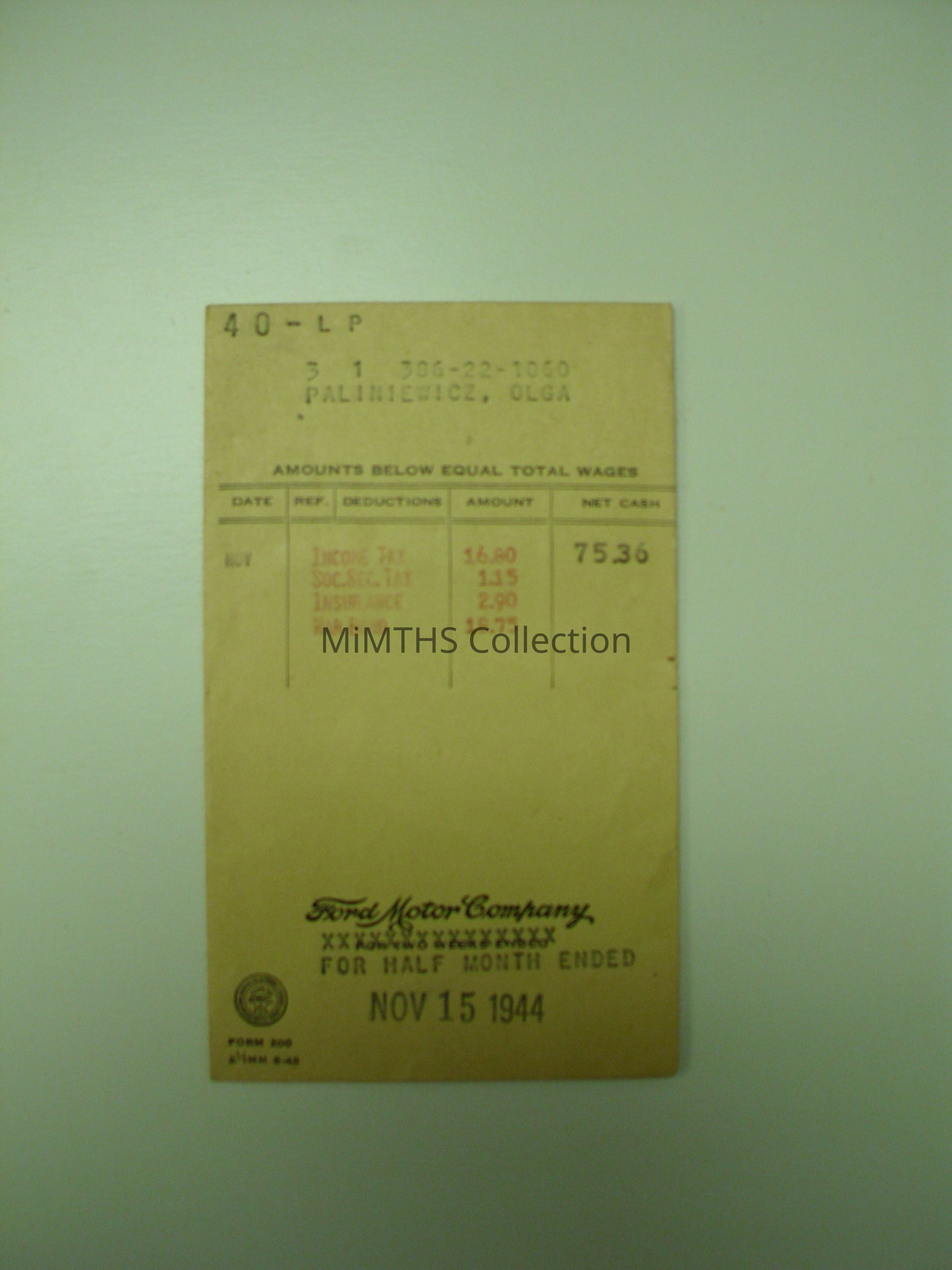 Ford Pay Envelope- Olga PaliniewiczEntry/Object ID