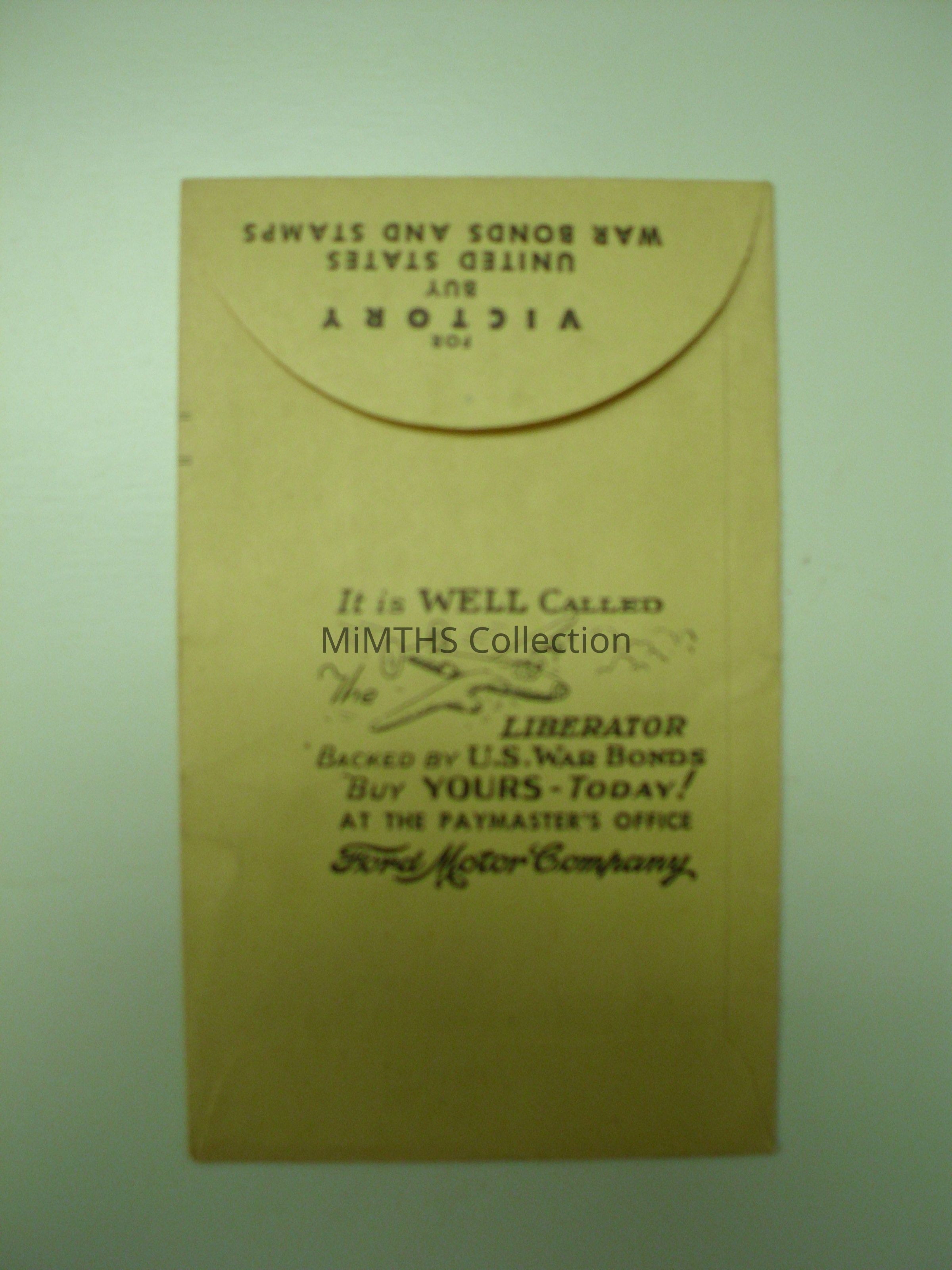 Ford pay envelope dated November 15. 1944. Has patriotic B-24 art work on reverse.