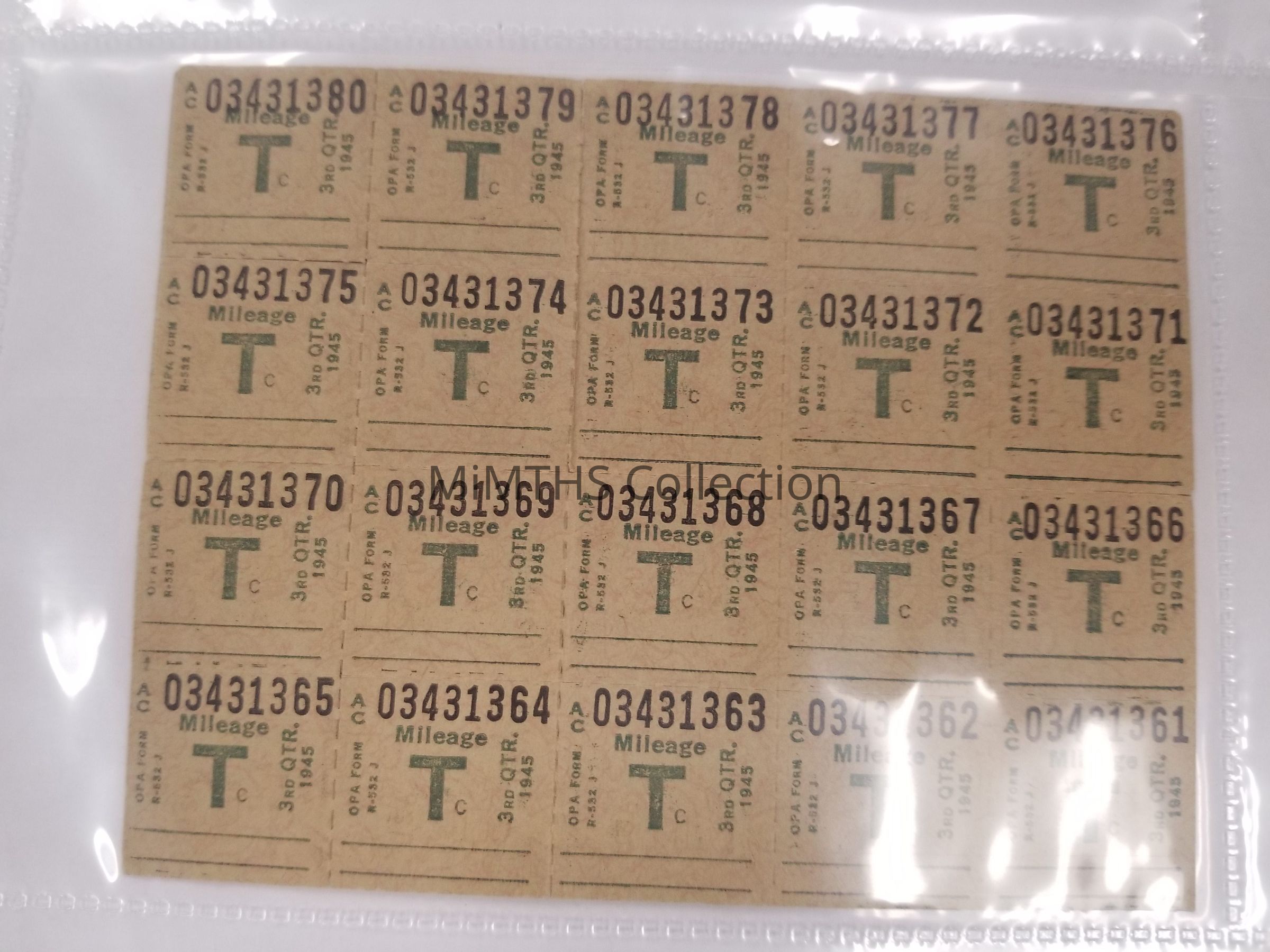Stamps used to purchase gas. used with conjunction with the T sticker that would be affixed to the window of a truck. Used by truckers hauling war production goods.Cataloged By