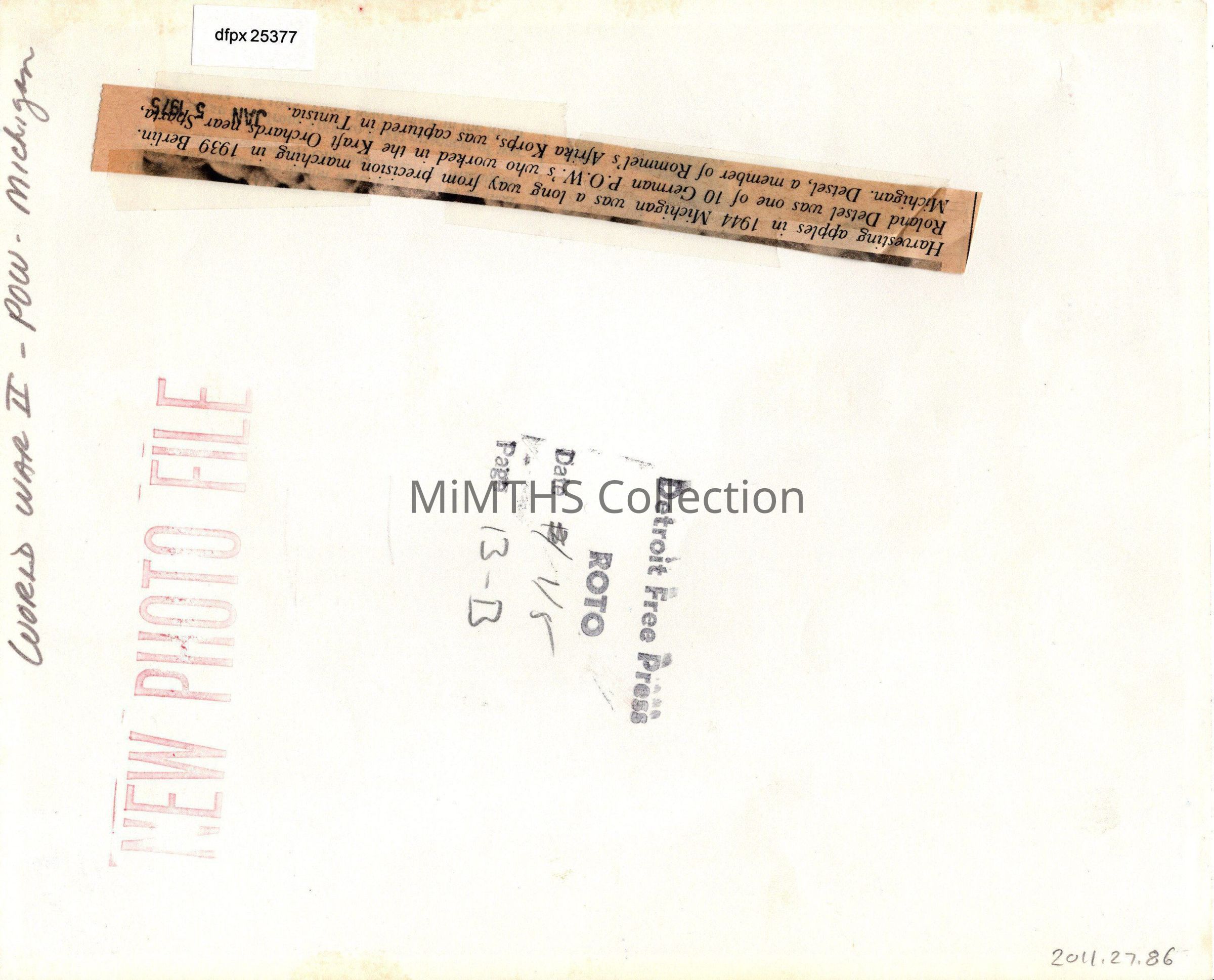 Appears to have been used in a 1975 article on POWs in Michigan.Photograph Details