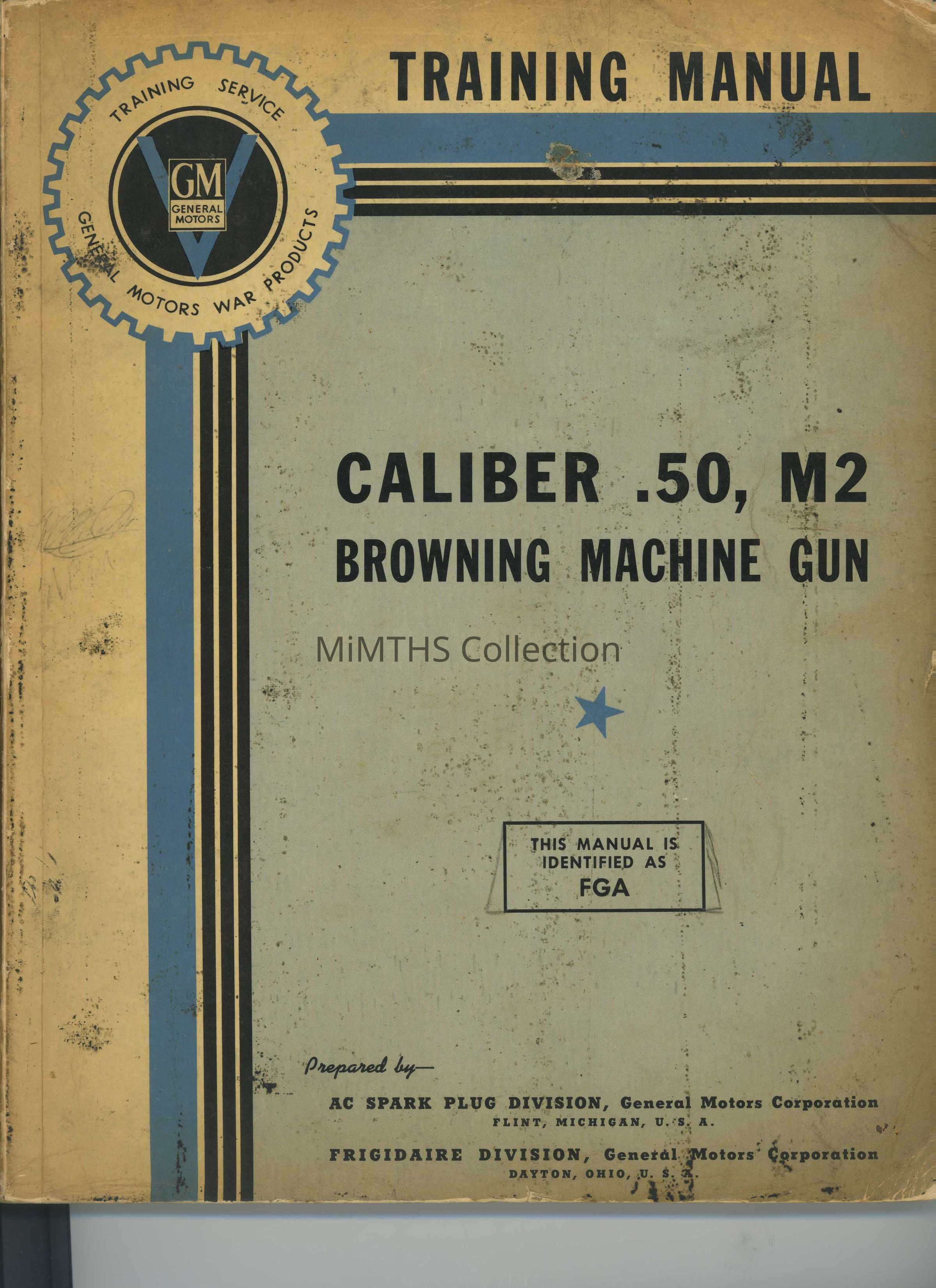 8.5x11 Training manual for the M2 .50 Caliber Machine Gun prepared by the AC Spark Plug Division, Flint.Cataloged By