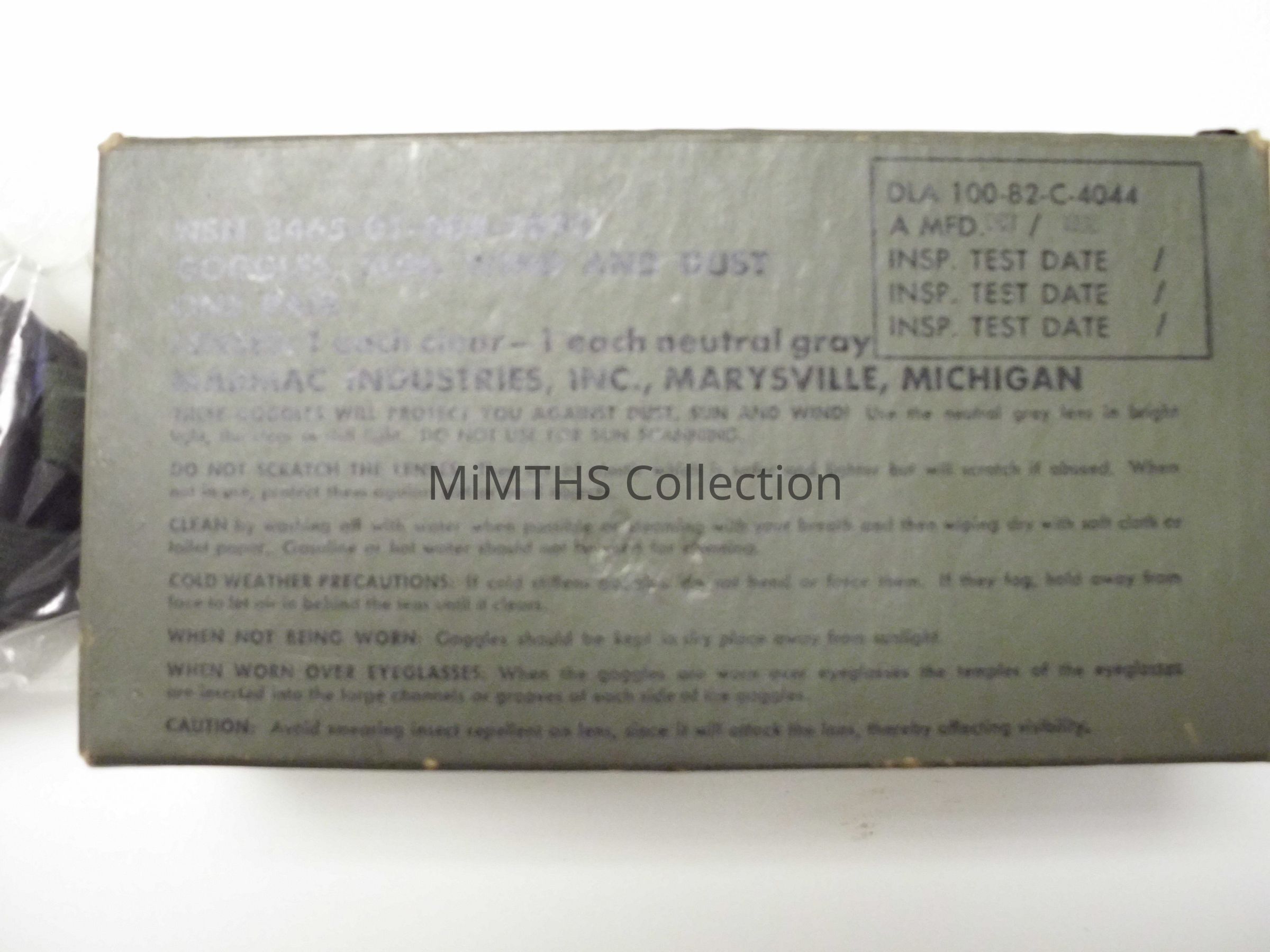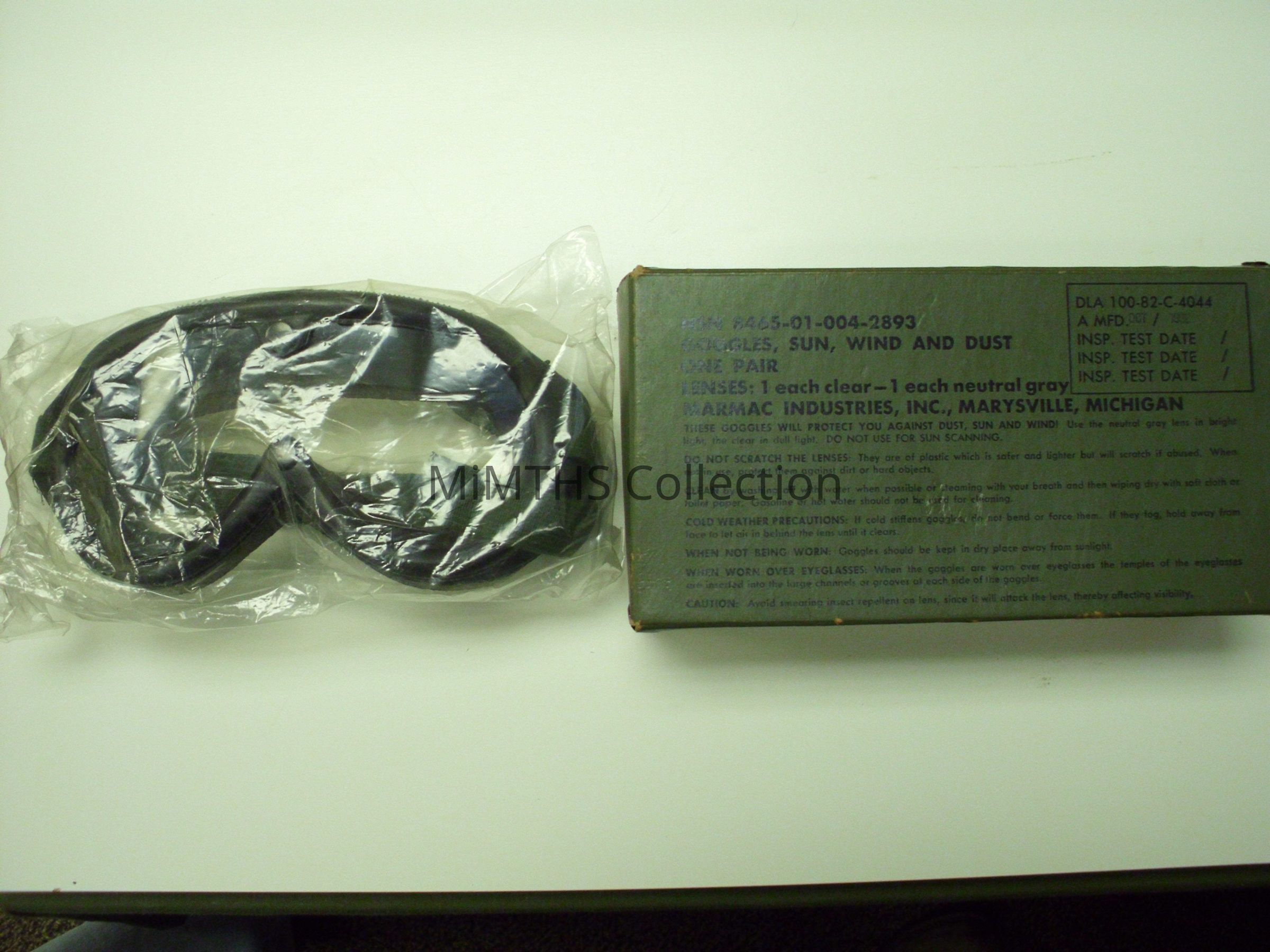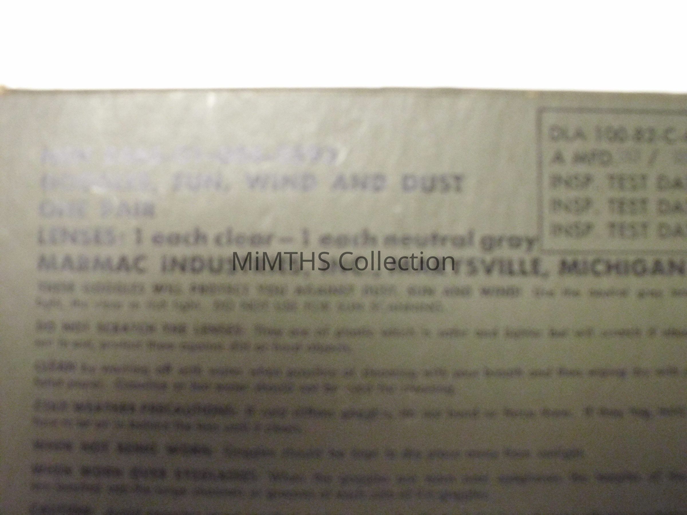 1 pair of Goggles, Sun, Wind and Dust, in box with clear and grey lenses, NOS. made by Marmac Industries Inc. Of Marysville MICataloged By