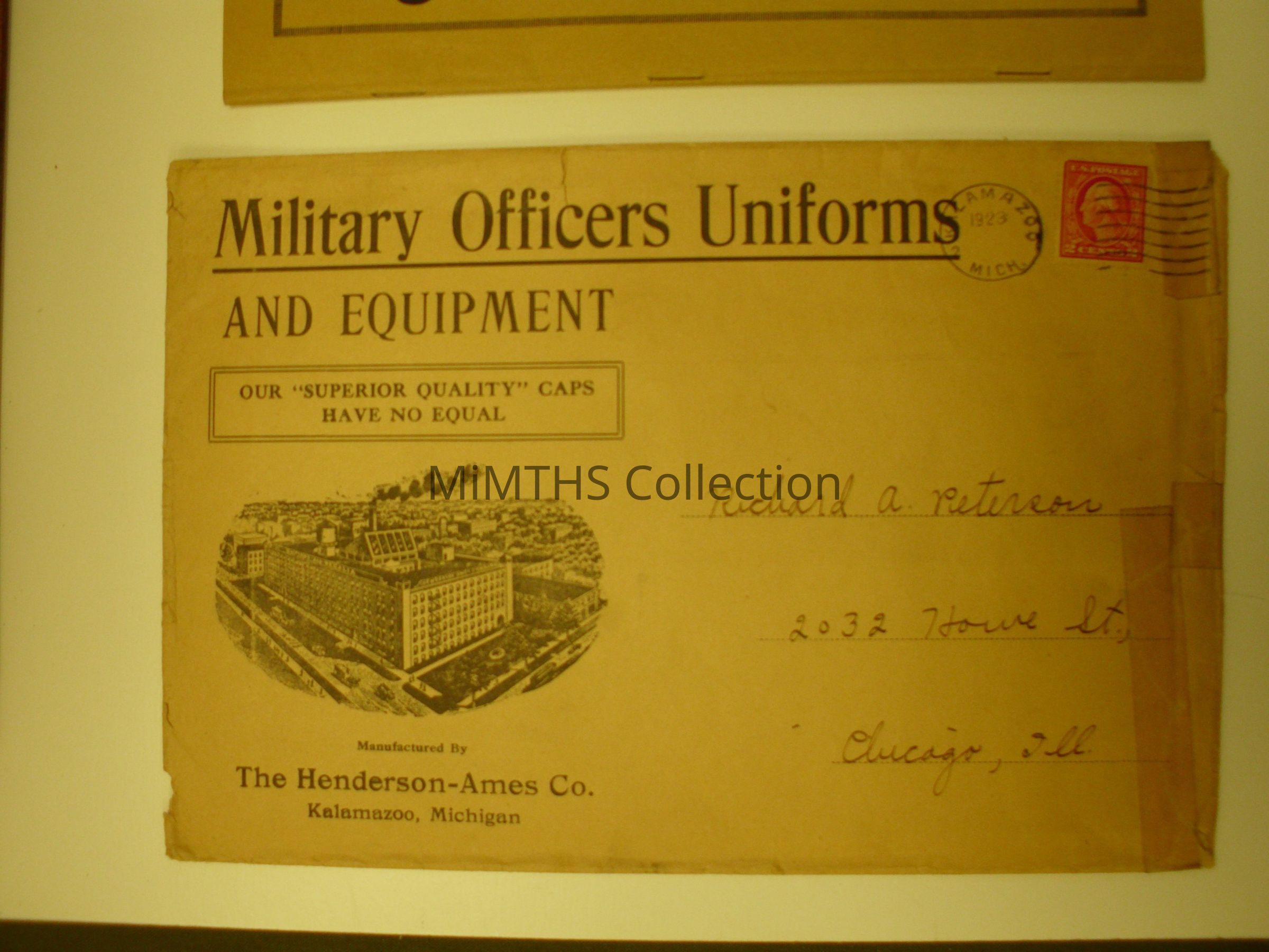 9.5x6.5inch envelope for the Hederson & Ames Uniform catalog. Postmarked 1923Cataloged By