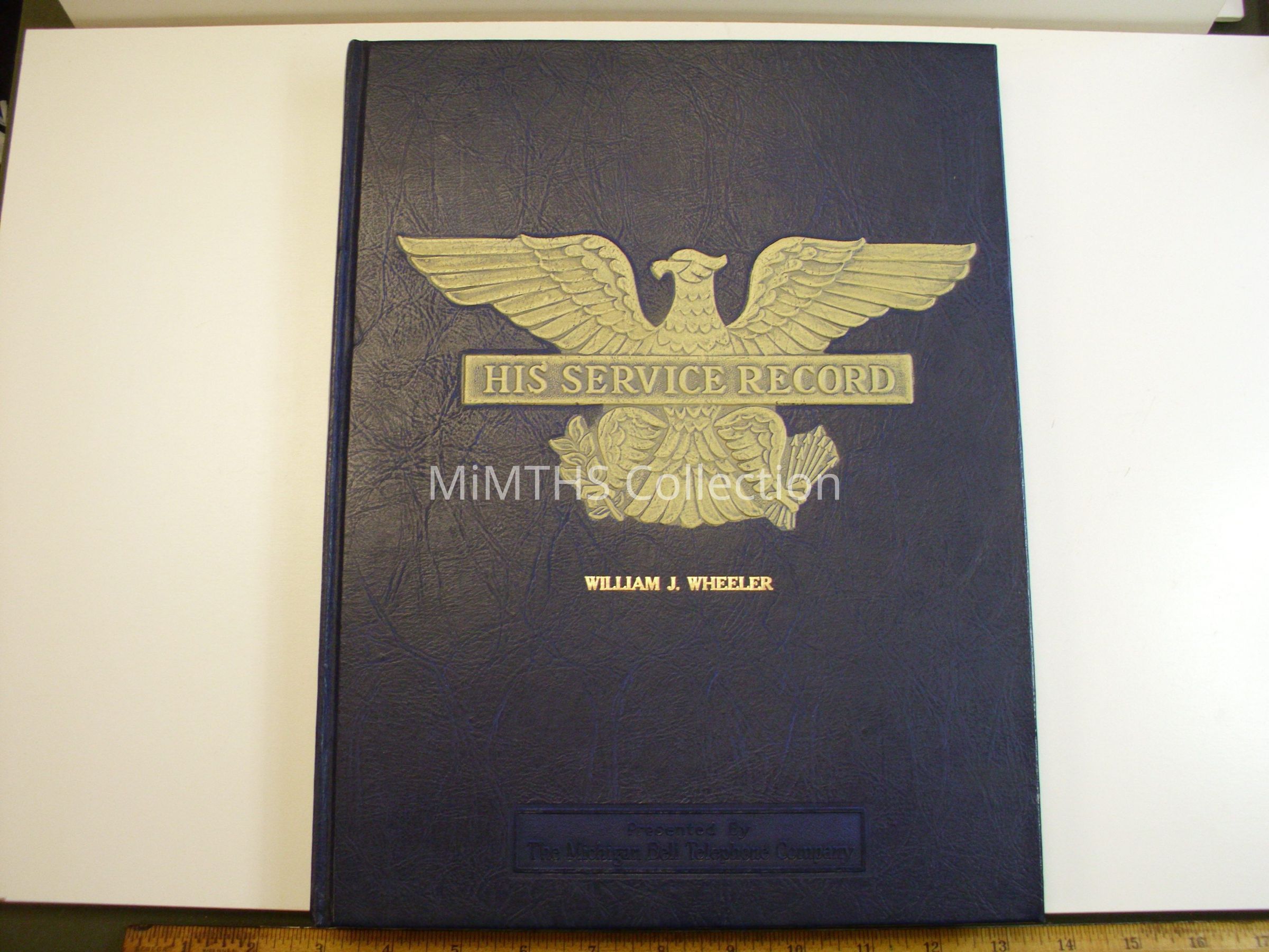 Service record book for William J. Wheeler of Saginaw, Michigan. Presented by the Michigan Bell Telephone Company. Partially filled out.Cataloged By
