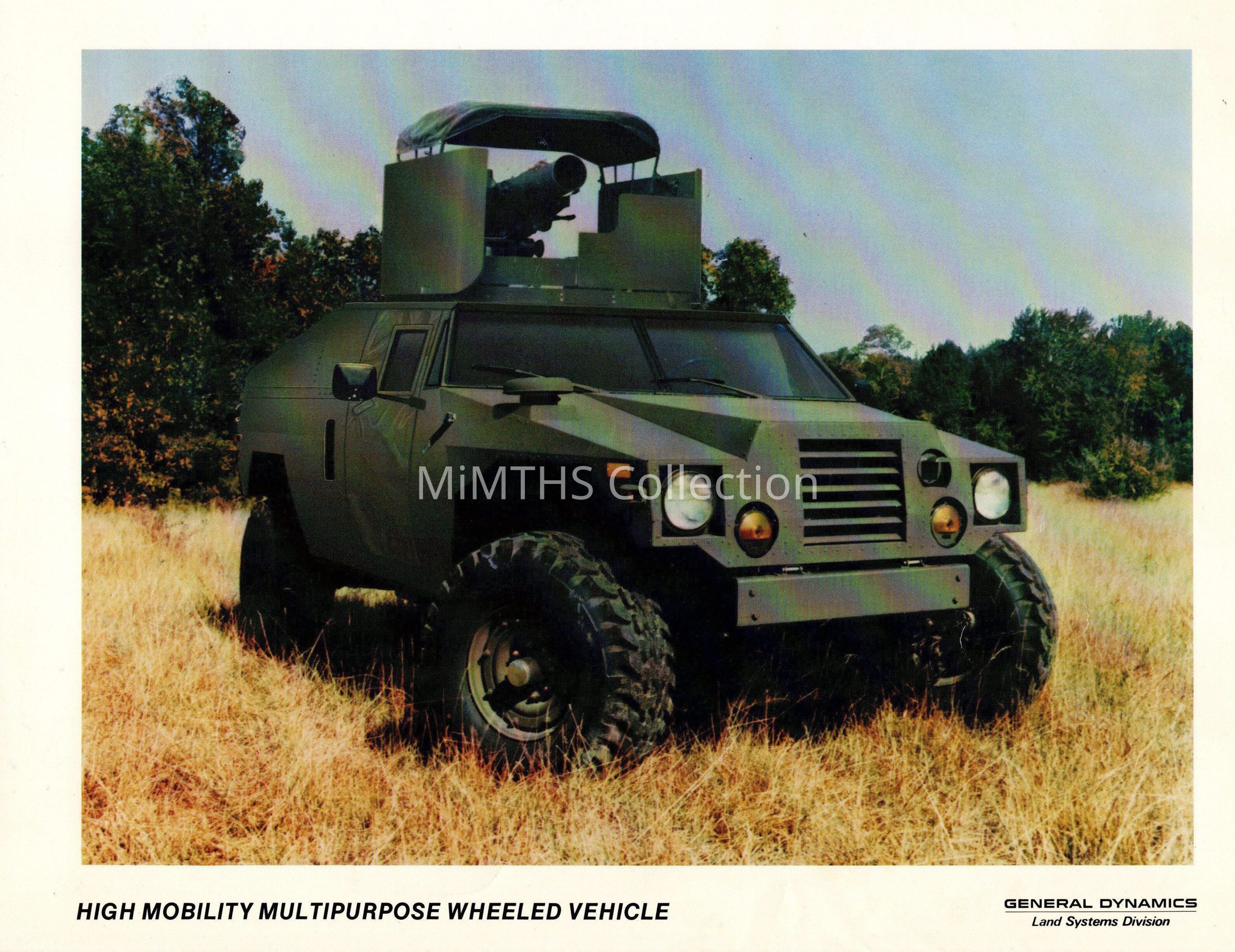 Publicity card for the General Dynamics submission to the High Mobility Multipurpose Wheeled Vehicle competition.
