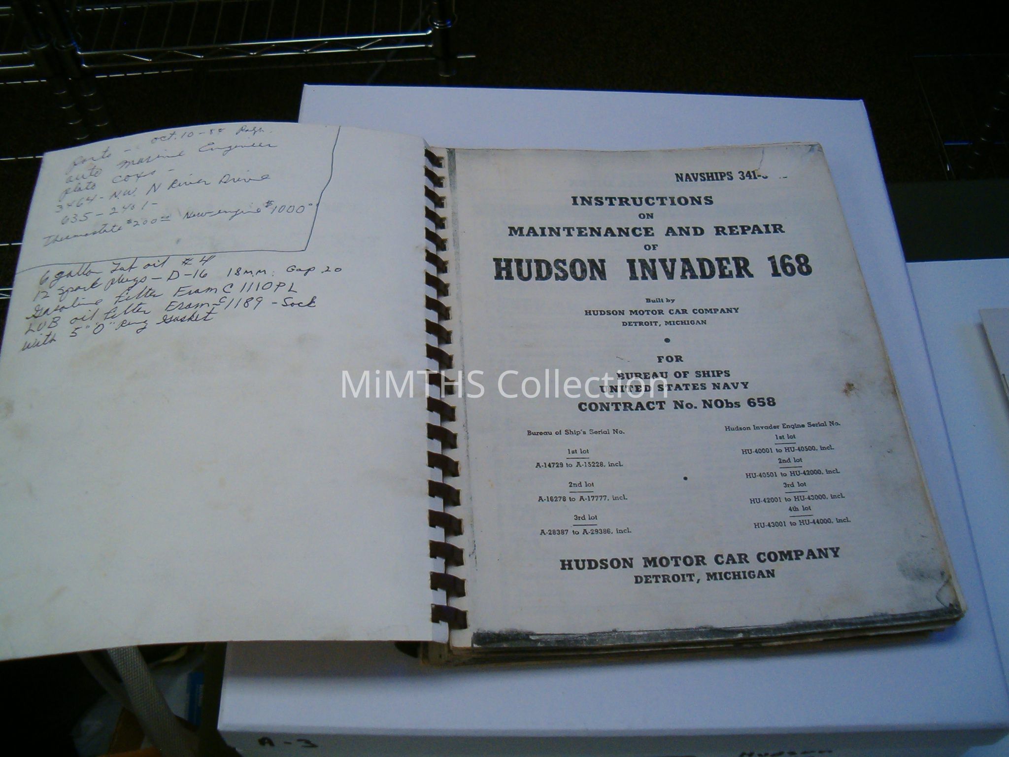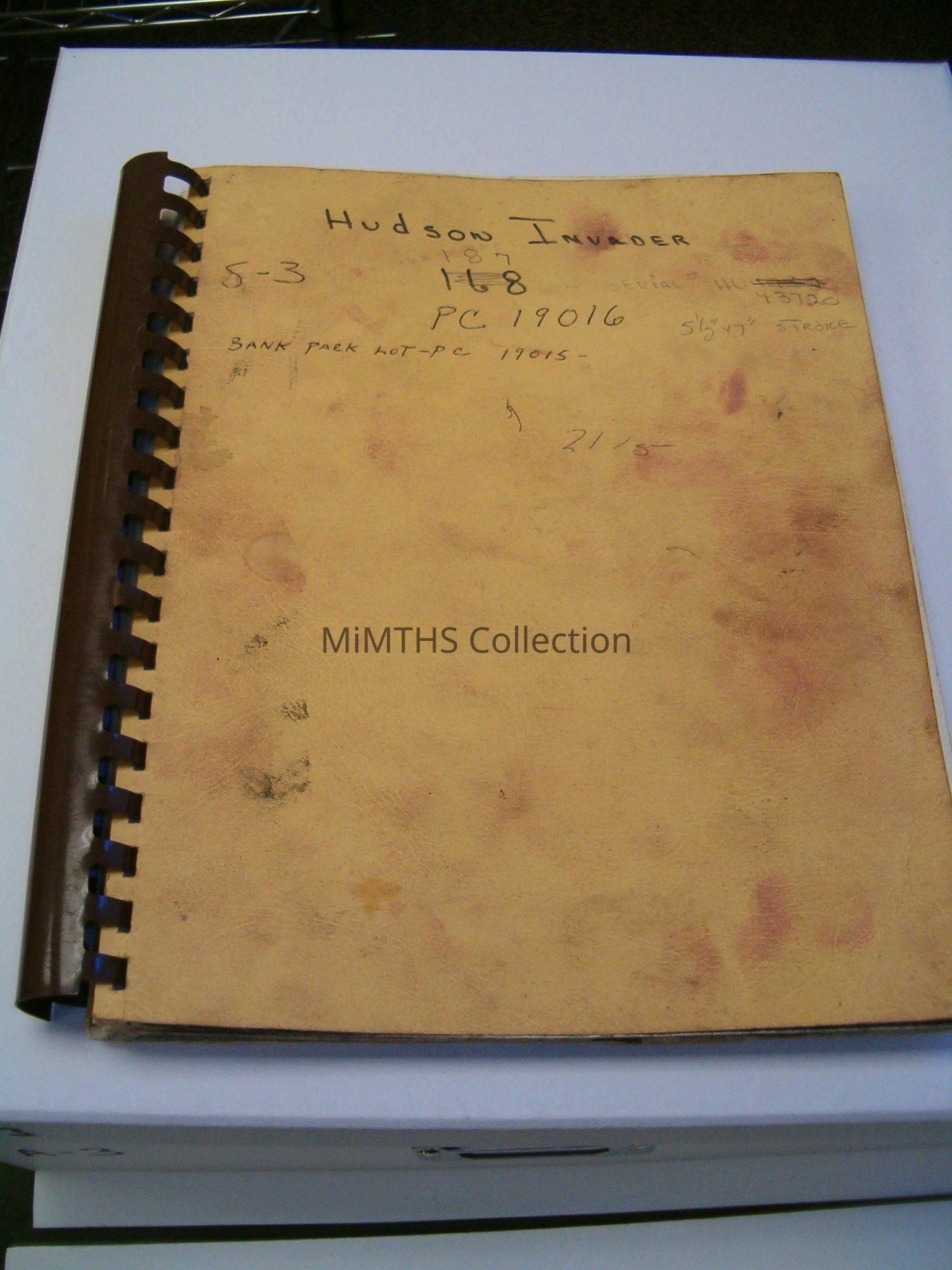 Plastic Spiaral bound copy of the Hudson Invader 168 Parts BookCataloged By