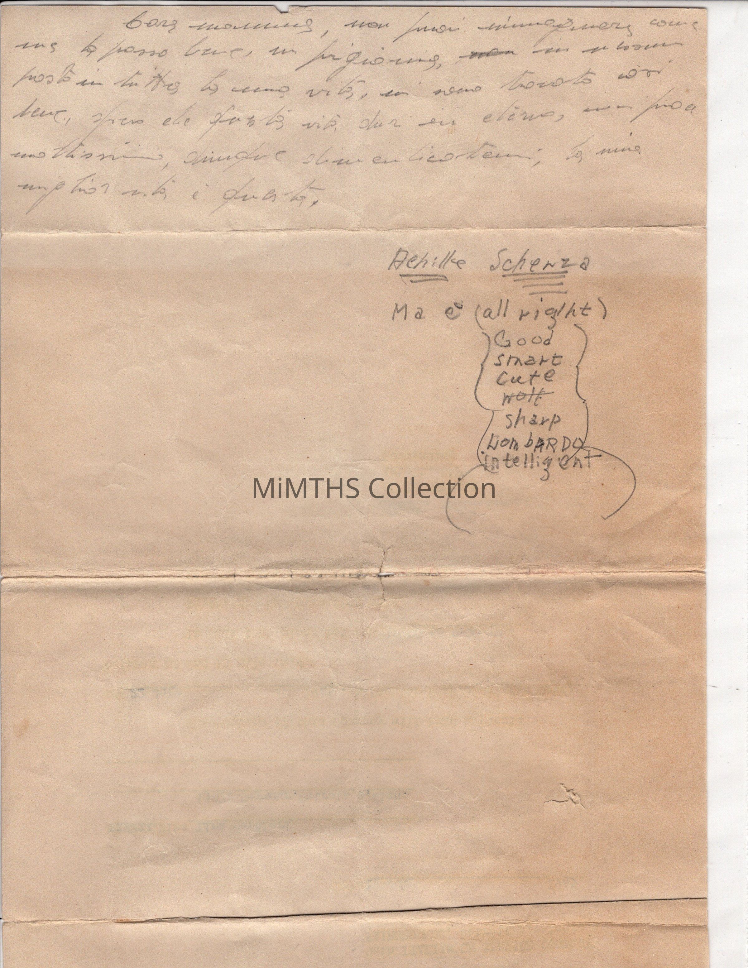 Cara mamma, non poui imaginare come me la passo bene, in prigonia, in nesseun posto in tutti la mia lita, mi sono trovato cosi bene. Spero che questa vita in eterno, mi piace moltissimo, dunque dimenticatemi; la mia miglior vita e questa.