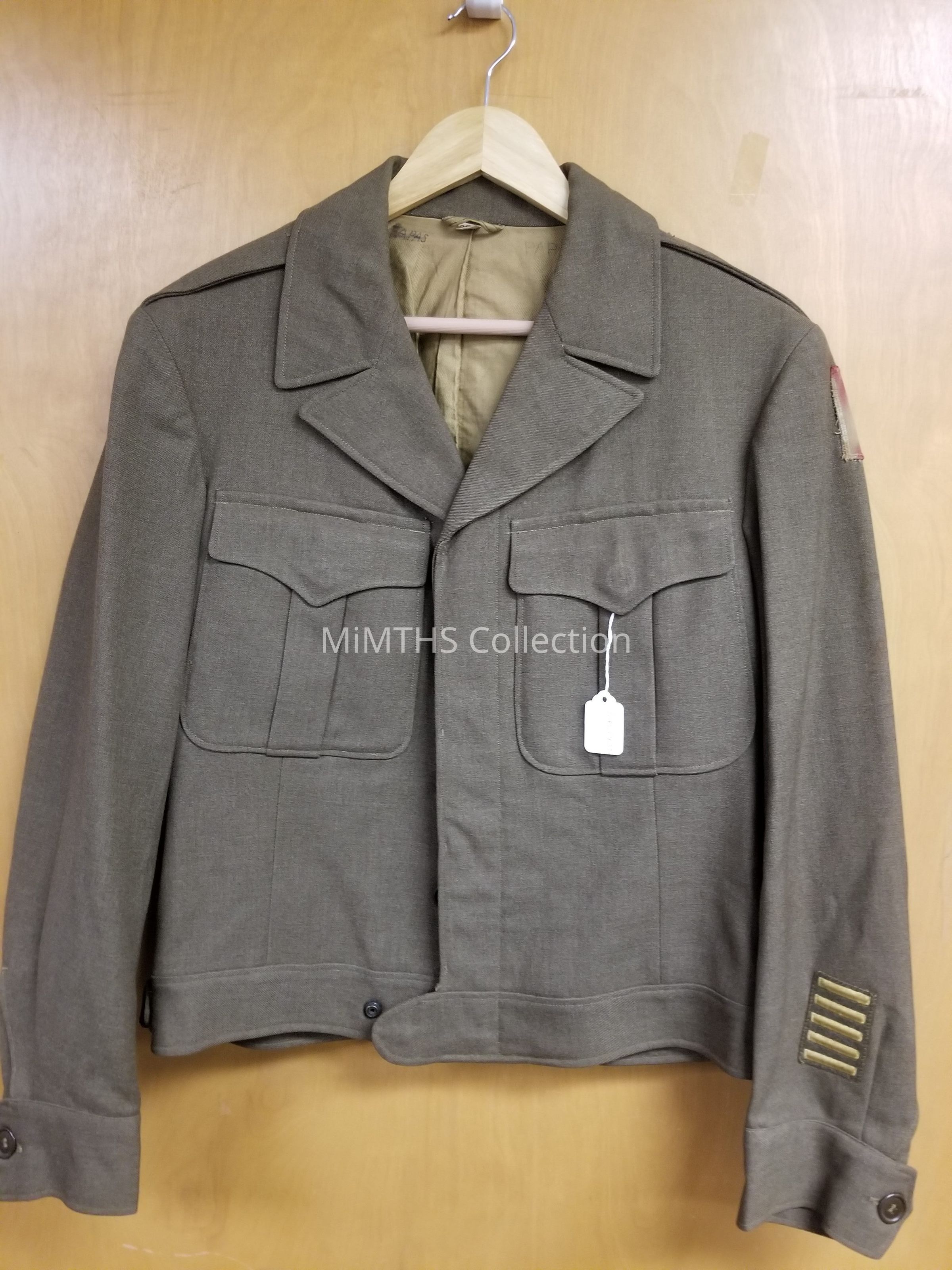 "Ike" Jacket, size 38R with Type II Civilian patch and 6 overseas barsCataloged By