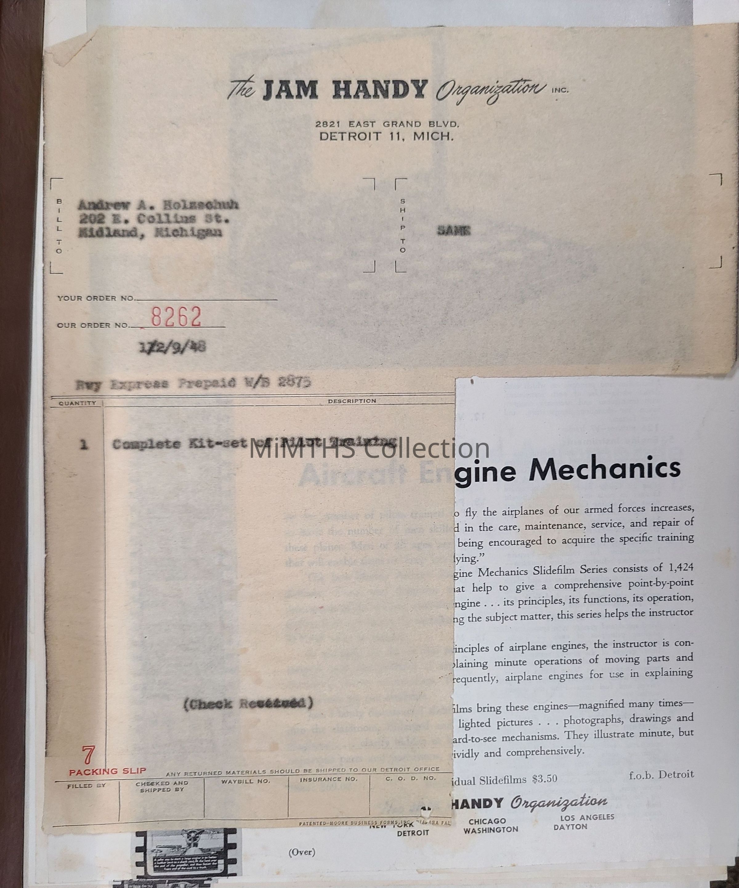 The box lid has "Jam Handy" embossed in the bottom right corner.Cataloged By