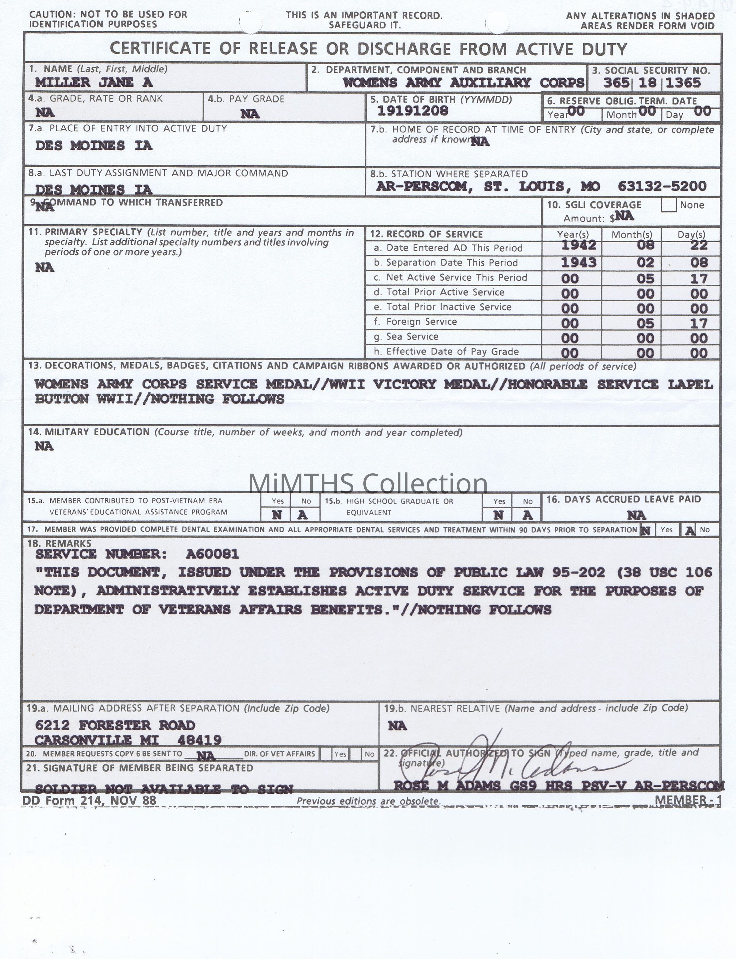 Women's Army Auxiliary Corps, Jane MillerRelated Places
