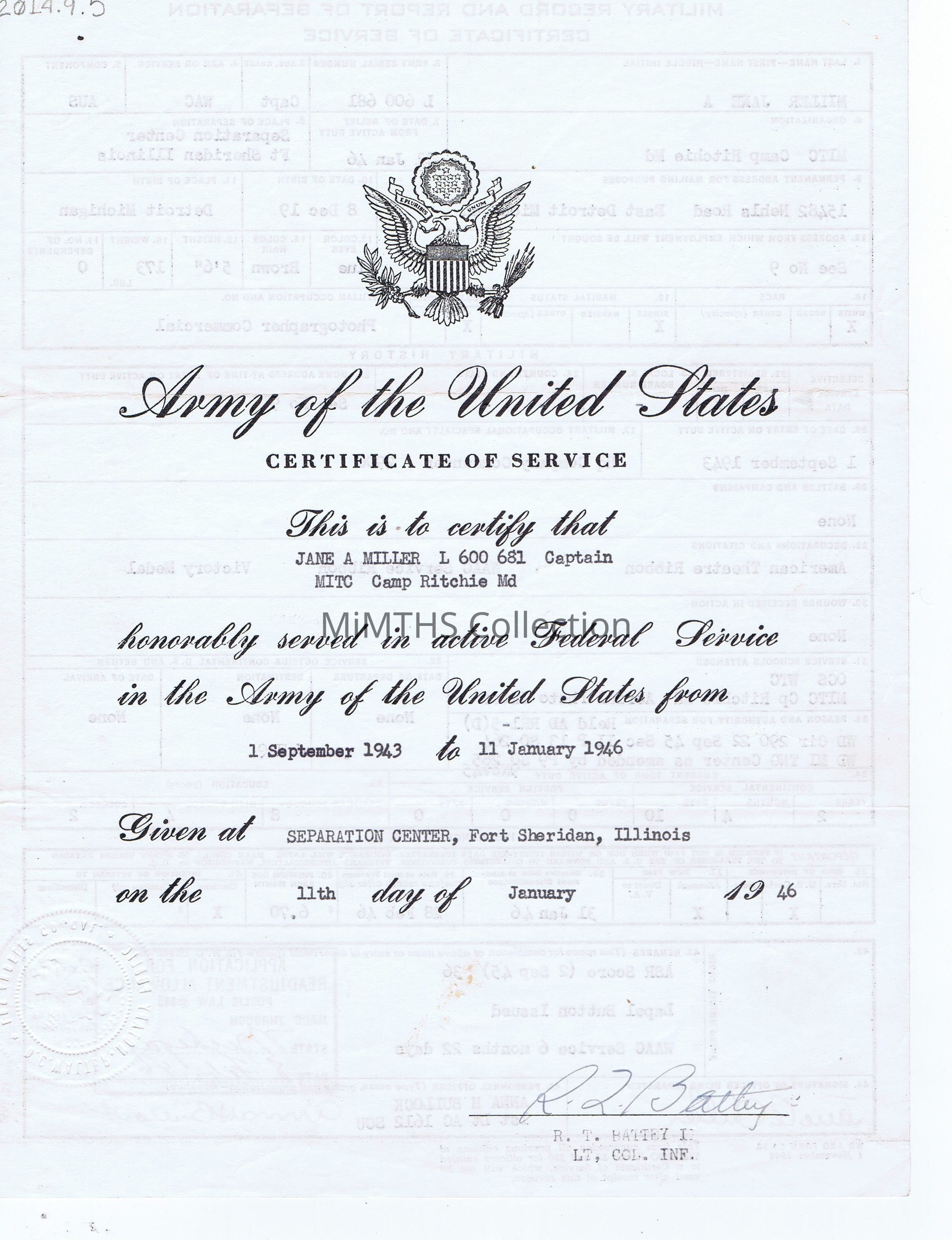 Folder containing photos and documents from the service of Jane Miller, WAAC 1942-1946.