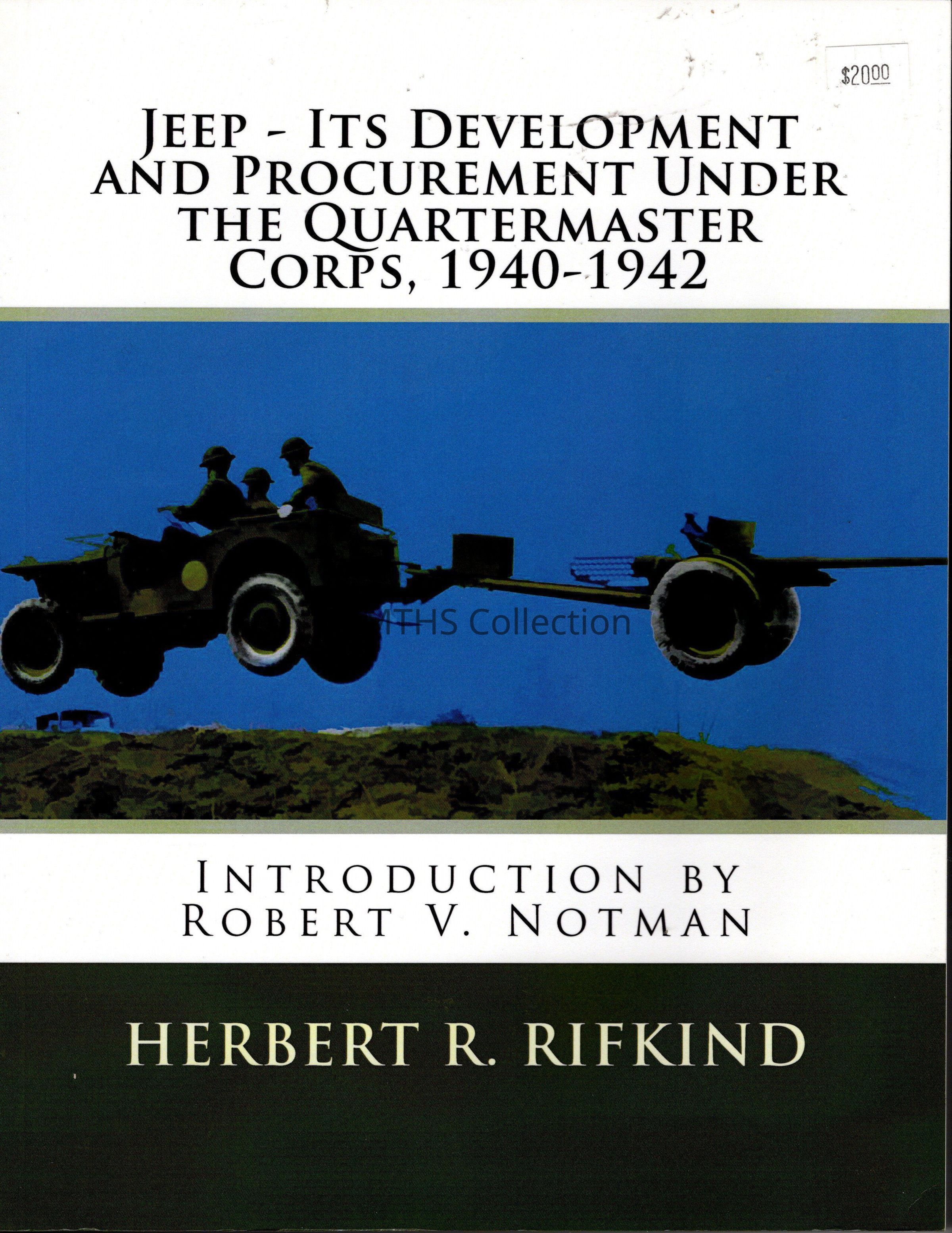 If you are interested in the history of the development of the jeep there is little substitute for the effort undertaken by Herbert R. Rifkind while World War II was still raging. This book was written from the Quartermaster Corps' perspective but draws on numerous resources and documentation to put together a pretty good picture of what happened. The other thing in its favor is that Rifkind’s work was written in 1943. But even by that time the jeep story was clouded over who did what and when. Rifkind covers Bantam's involvement, Willys-Overland and Ford companies developments, the contracts and other details important to the student of the WW2 jeep! What makes it even more valuable is that Rifkind actually lists the sources he used. So if you can figure out the record system used by the government back then and determine where to find them, you will find a gold mine of information to research. This book includes a reproduction of the original manuscript created by Rifkind. You will even find some pen and ink changes. (Amazon)Cataloged By