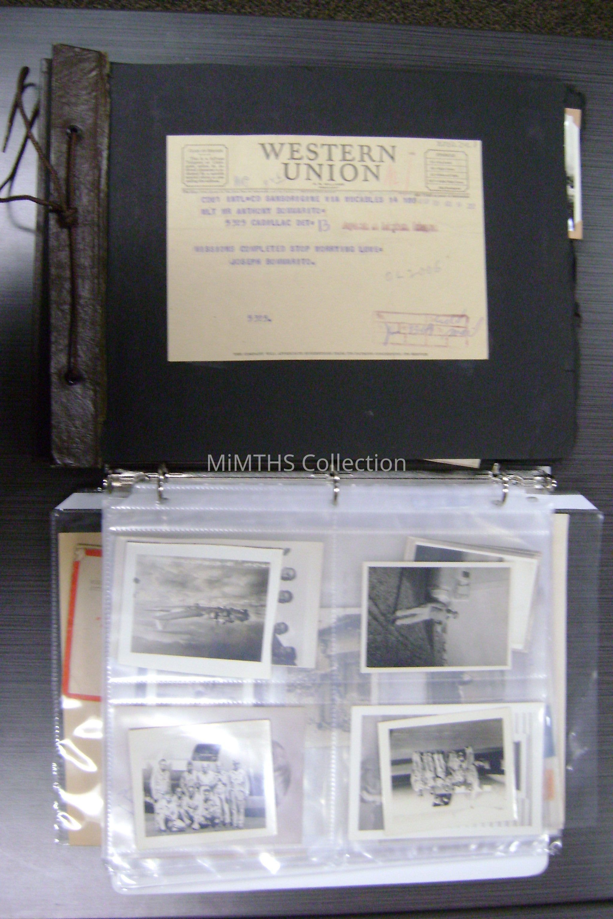 Various photos from the early life of Joe Bommarito before, during, and after his service in WWII. This includes one Western Union album that was mailed back home, and some additional photos sealed with other accompanying documents.Cataloged By