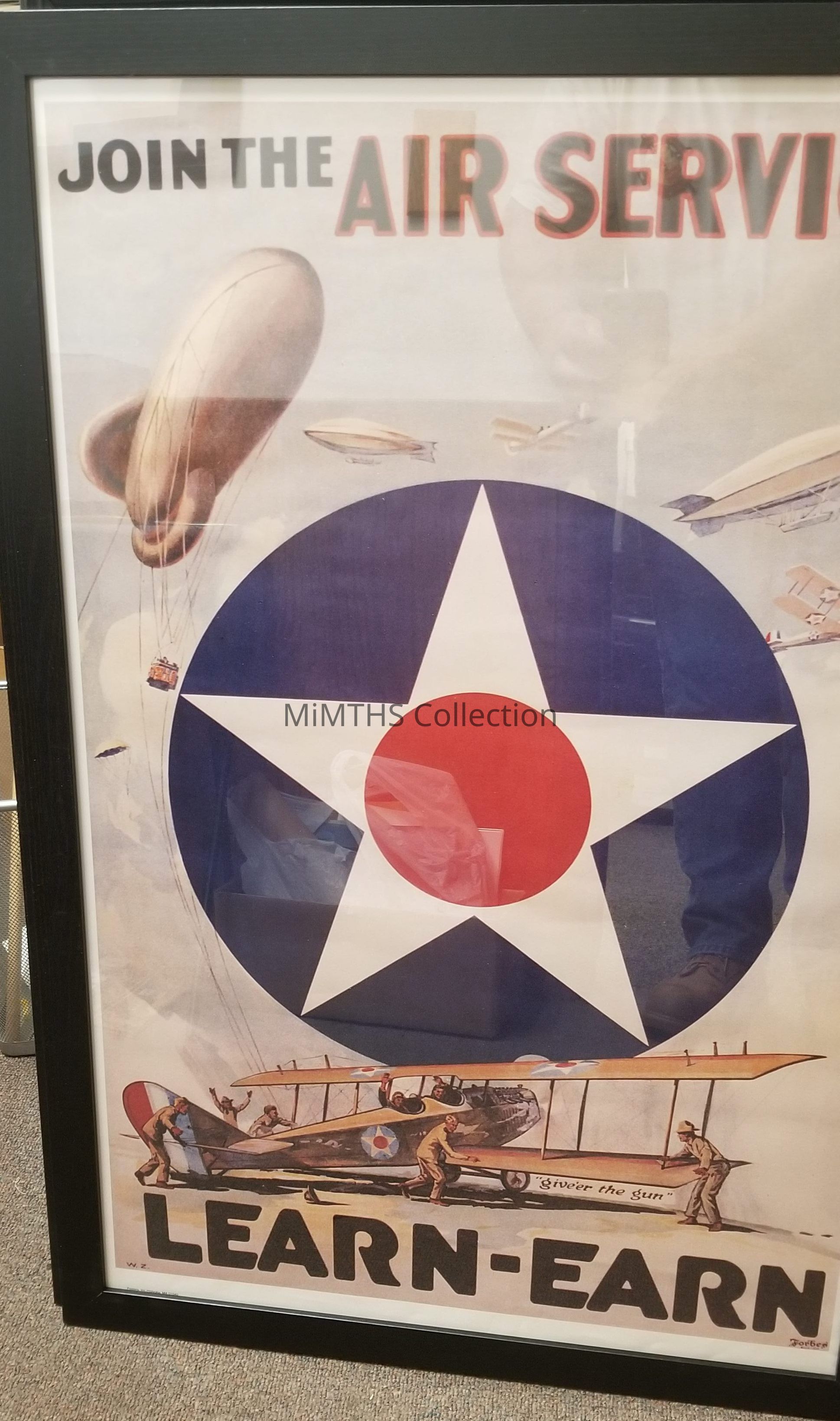 Reproduction WWI recruiting poster for the Air Service. "Learn-Earn"Cataloged By