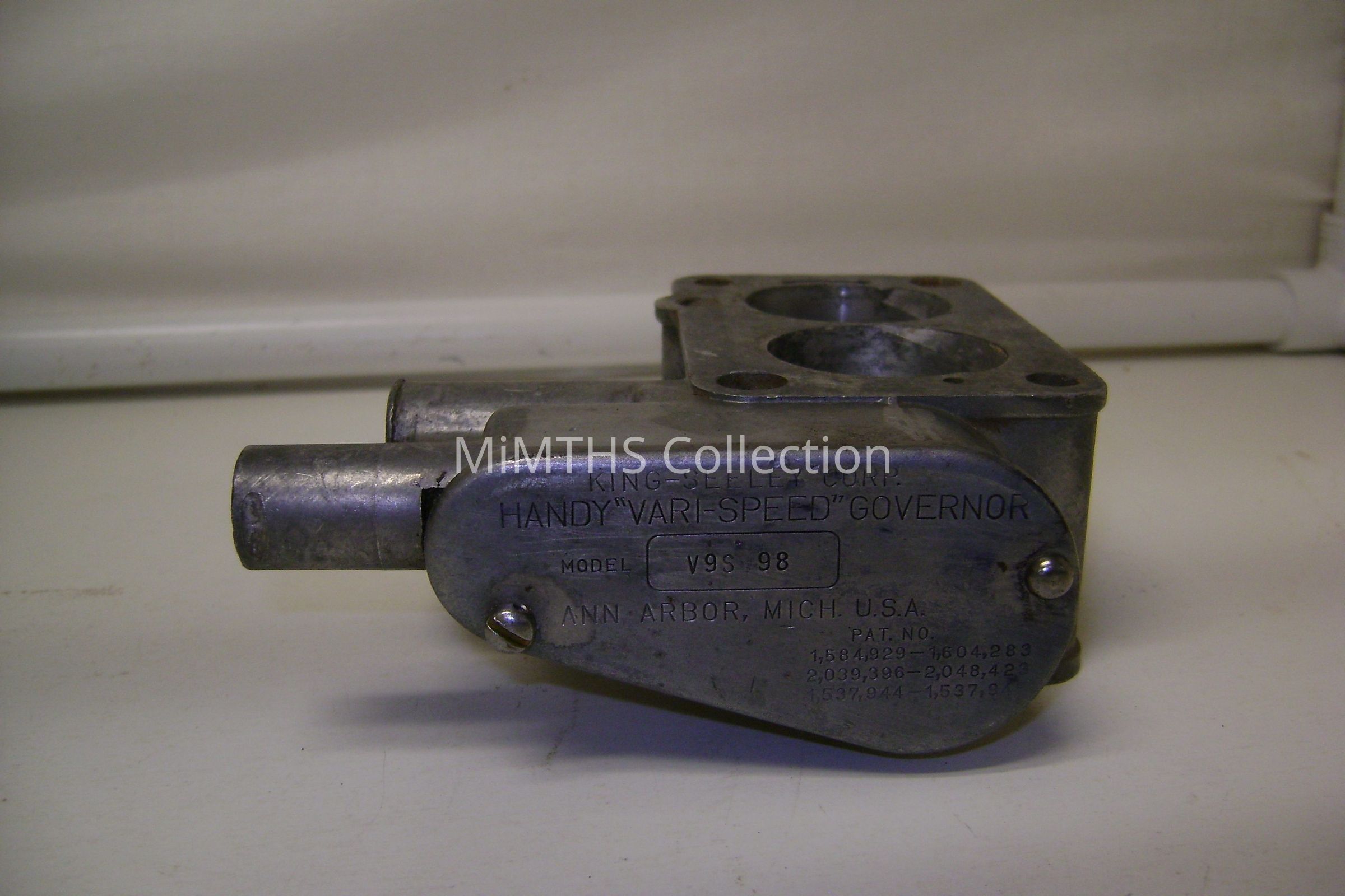 "Handy" variable speed governor made by the King Seeley Corporation of Ann Arbor Michigan during WWII. This unit was on a Hercules Engine in a US Army half trackCataloged By