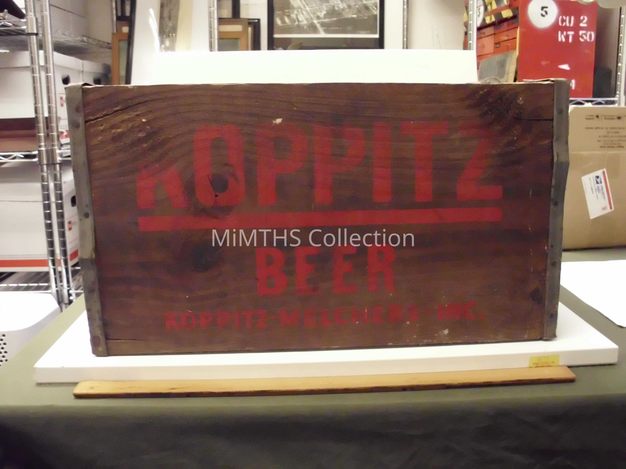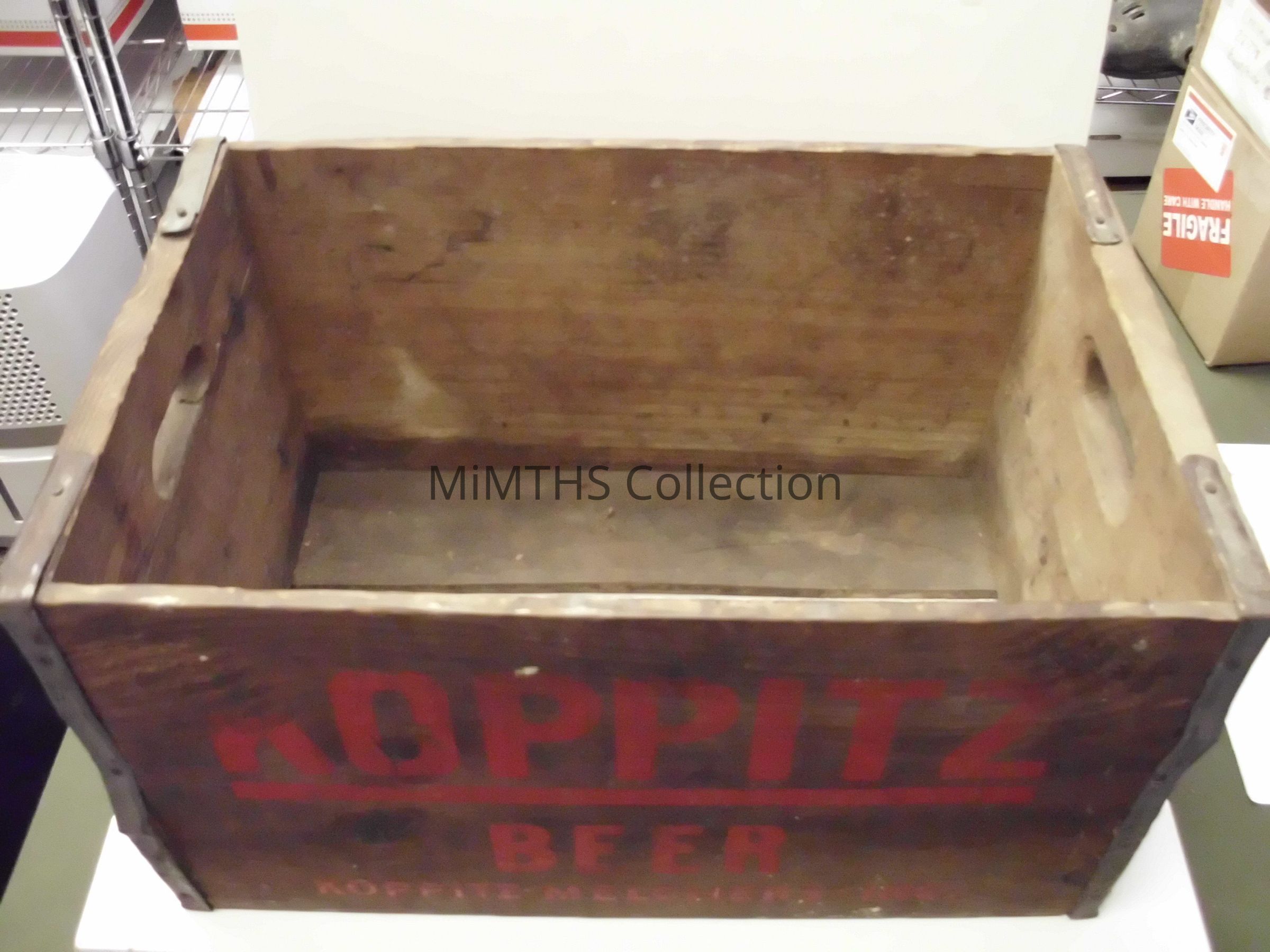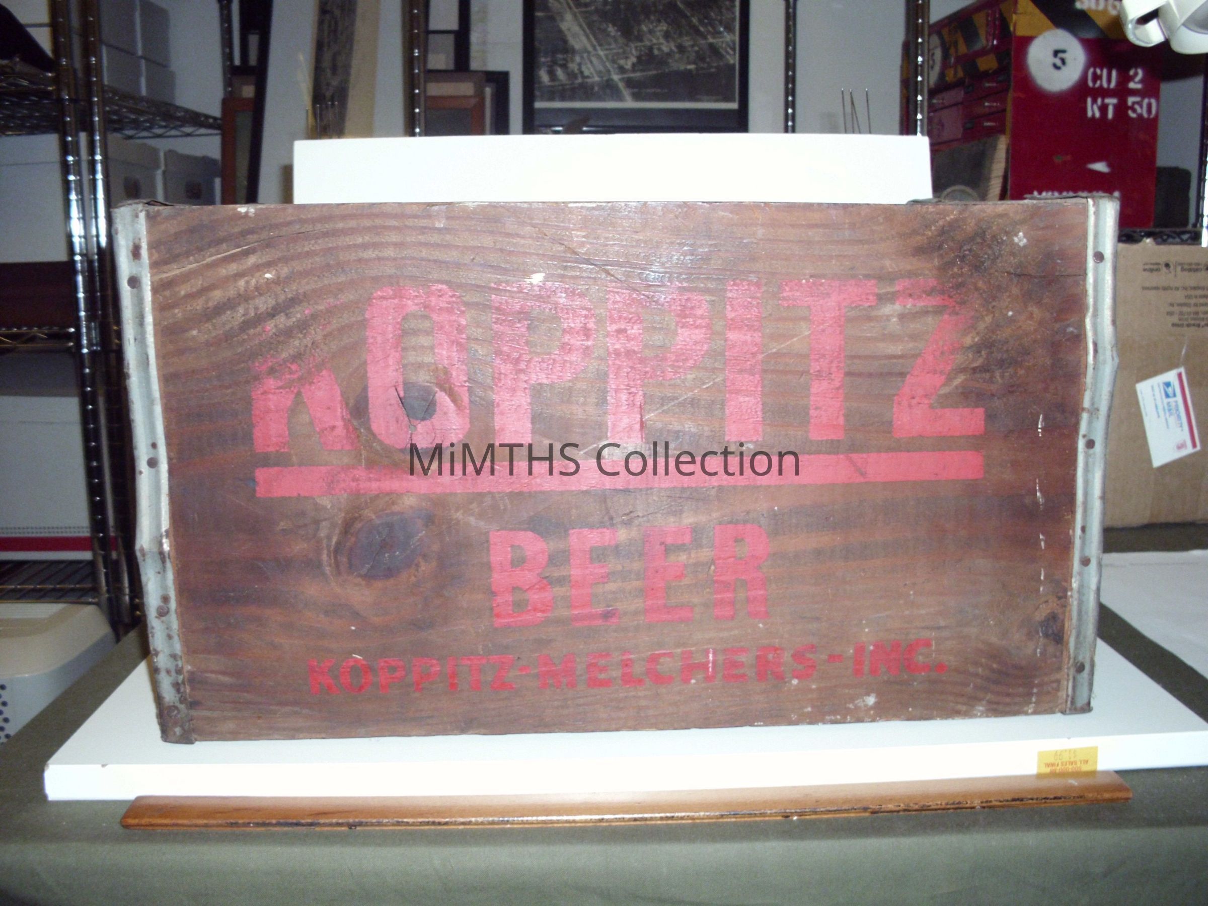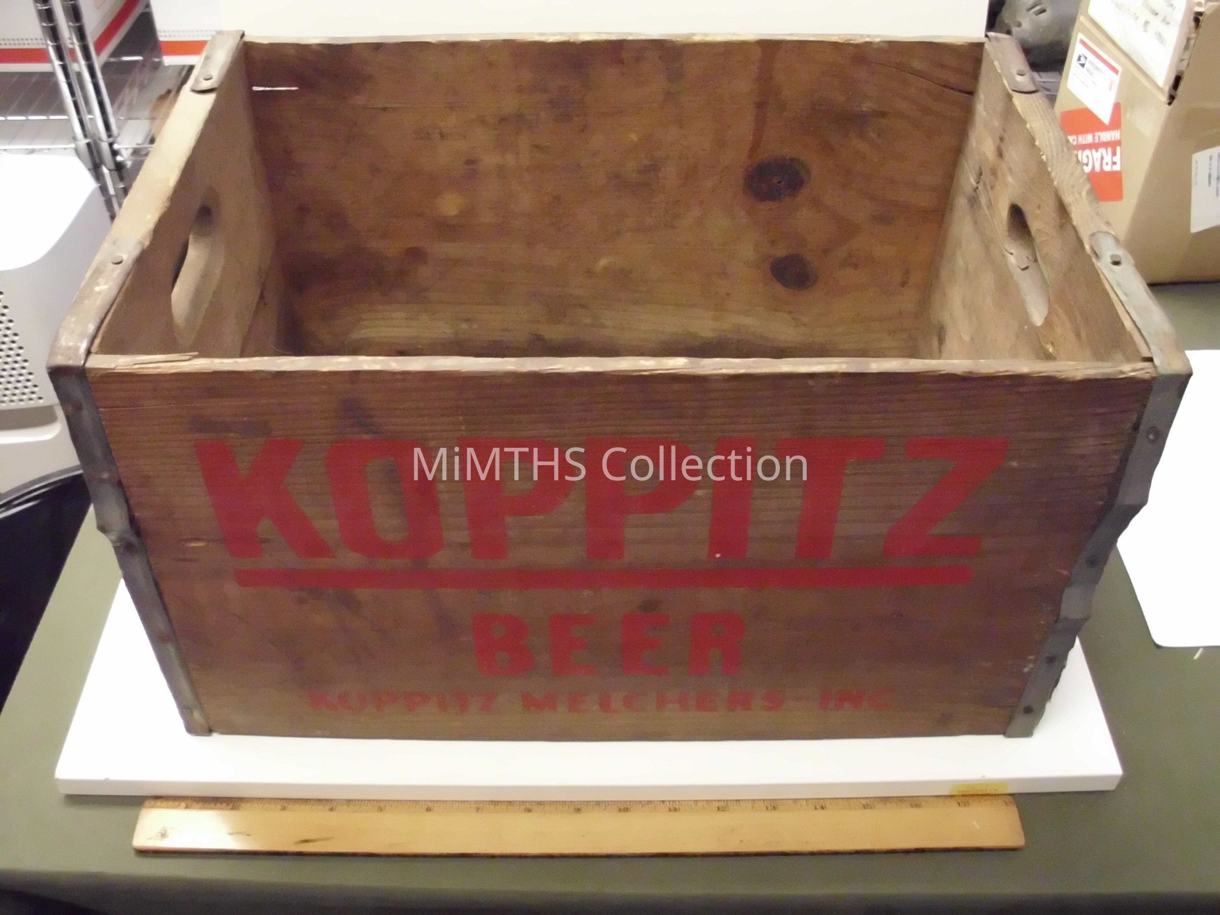 Wood beer crate from the Koppitz Melchers brewery 18x12x10 unpainted wood with red stencil