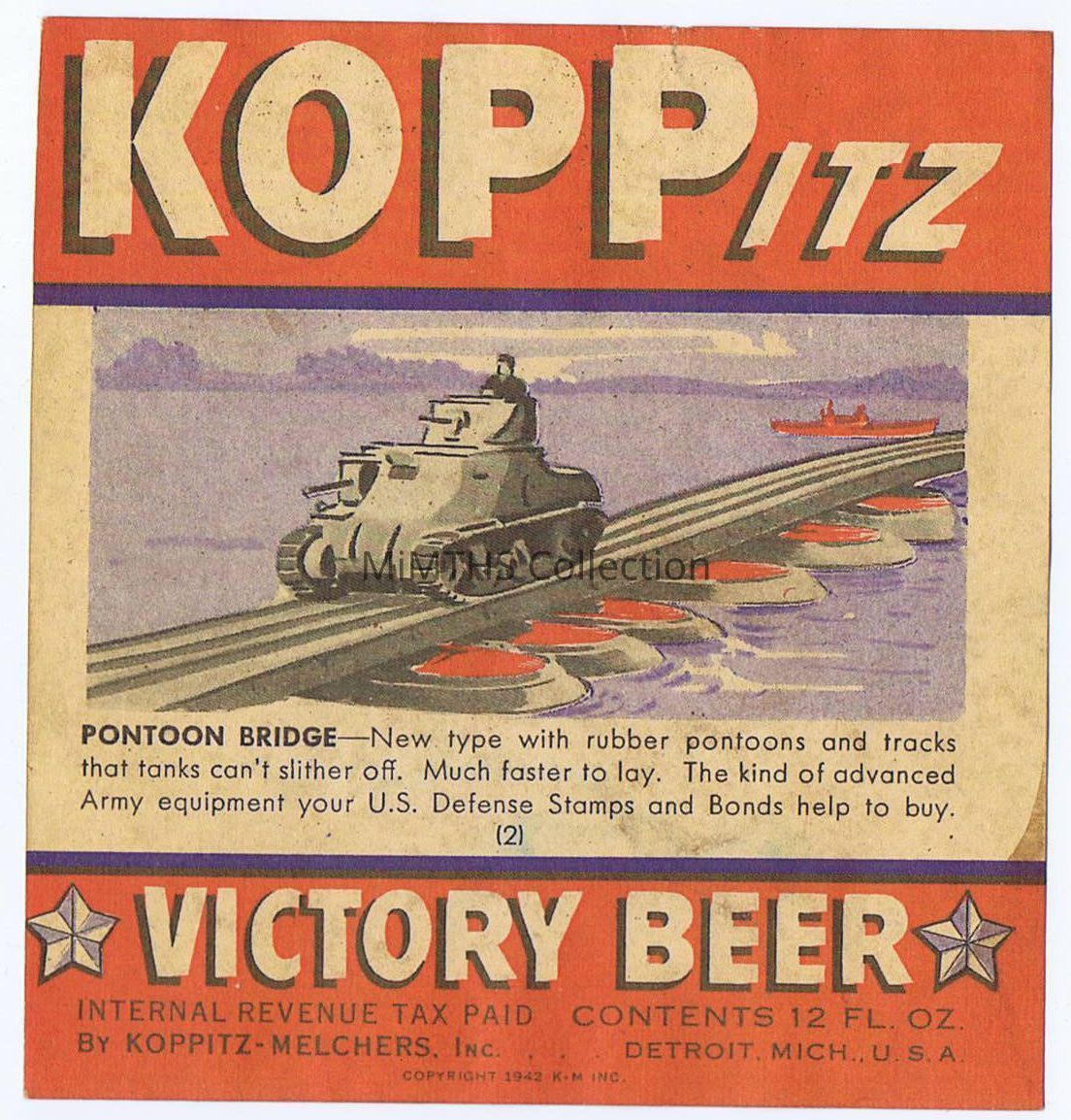 Koppitz Victory Beer Label #2 "Pontoon Bridge"Cataloged By