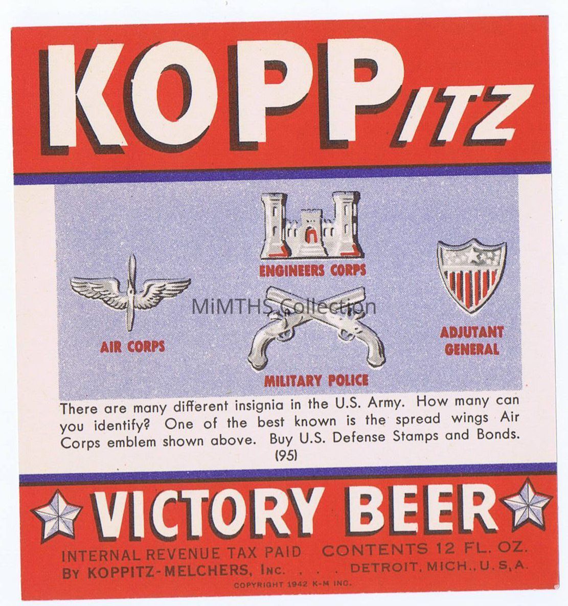 Koppitz beer label #95; Army InsigniaCataloged By