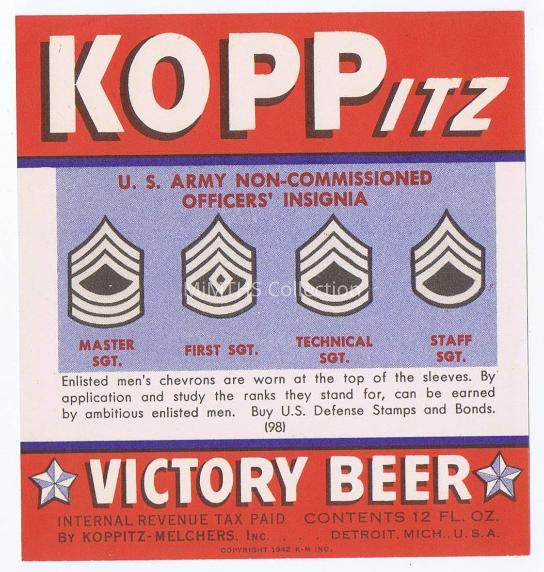 Koppitz beer label #98 ; Army Non-commisioned Officer InsigniaCataloged By