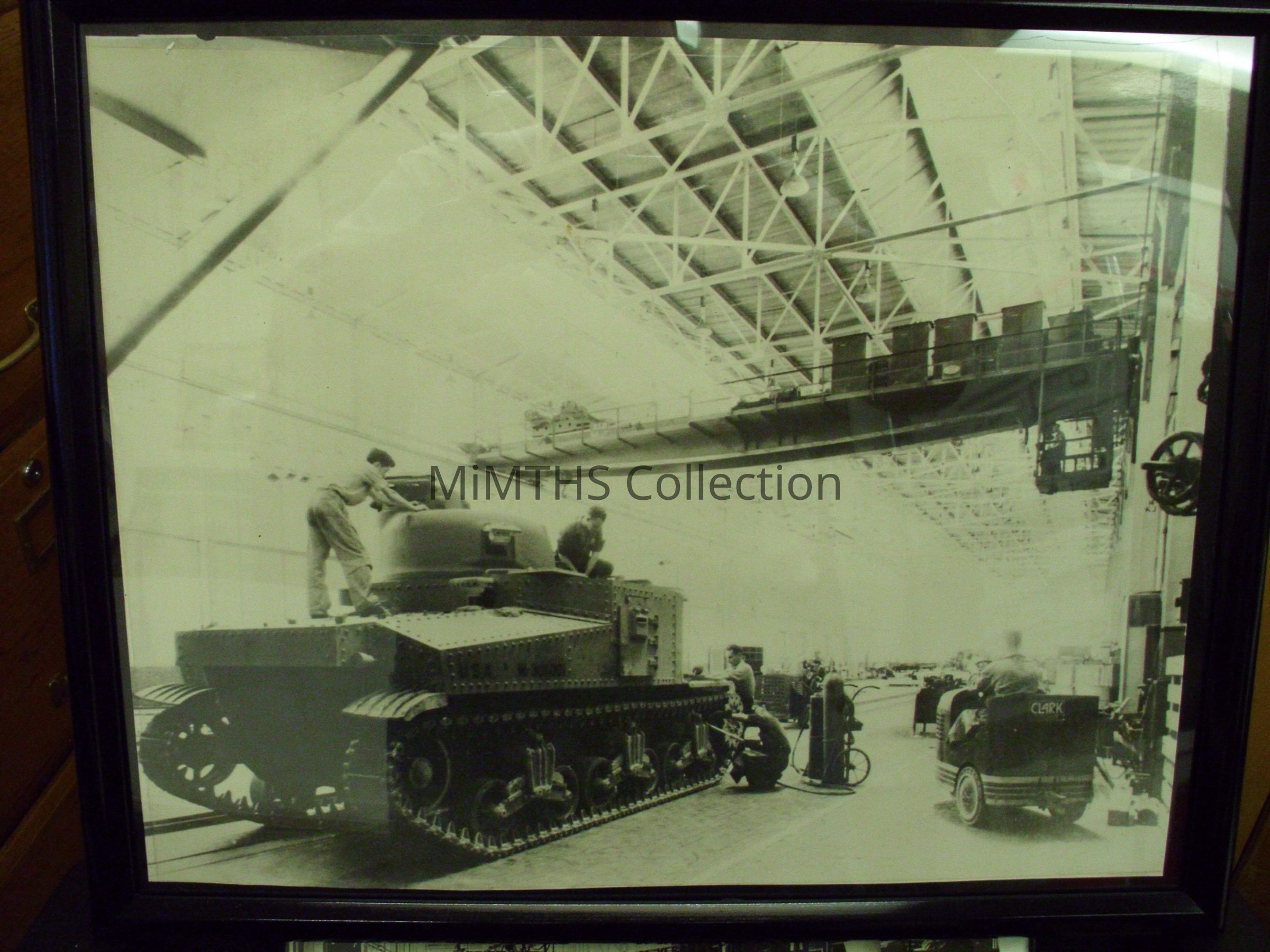 Photo of the first M3 Lee tank to go down the Chrysler Warren Tank Plant Assembly line.