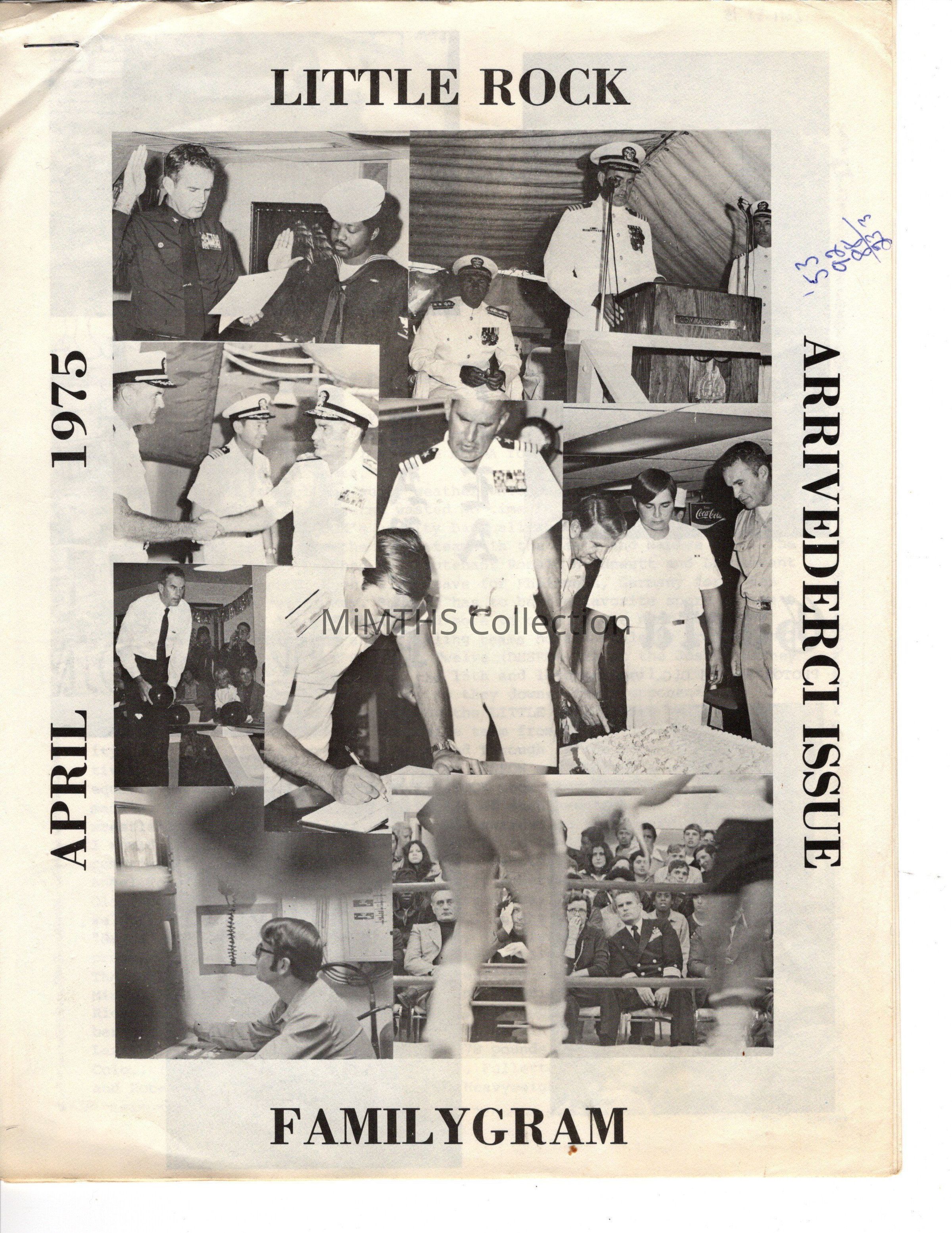 Newsletter from the USS Little Rock. Commemorates change in command of the Little Rock. April 1975Cataloged By