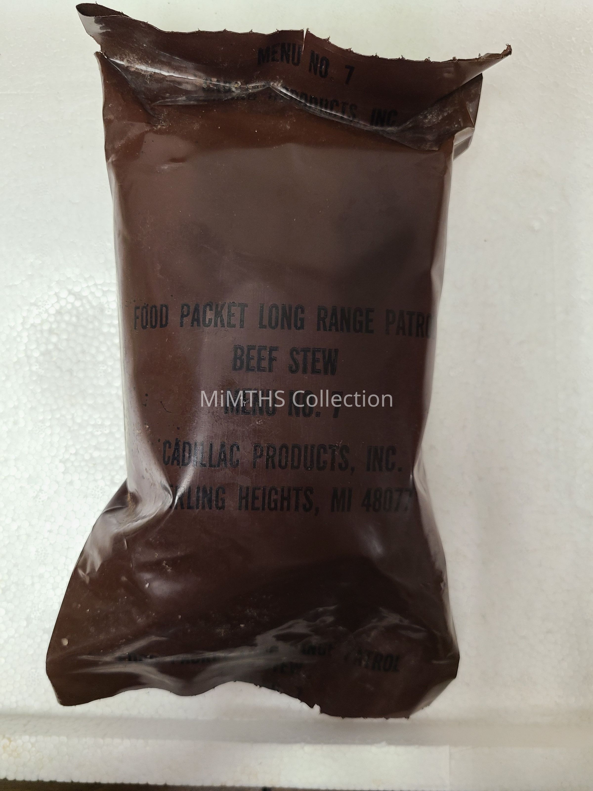 The Food Packet, Long Range Patrol was a freeze-dried dehydrated United States military ration used by the Department of Defense. Developed in 1964 and intended for wide adoption during the Vietnam War, its use was eventually limited to American special operations forces during long-range reconnaissance patrols, where bulky canned Meal, Combat, Individual (MCI) rations proved too heavy for extended missions on foot.Cataloged By